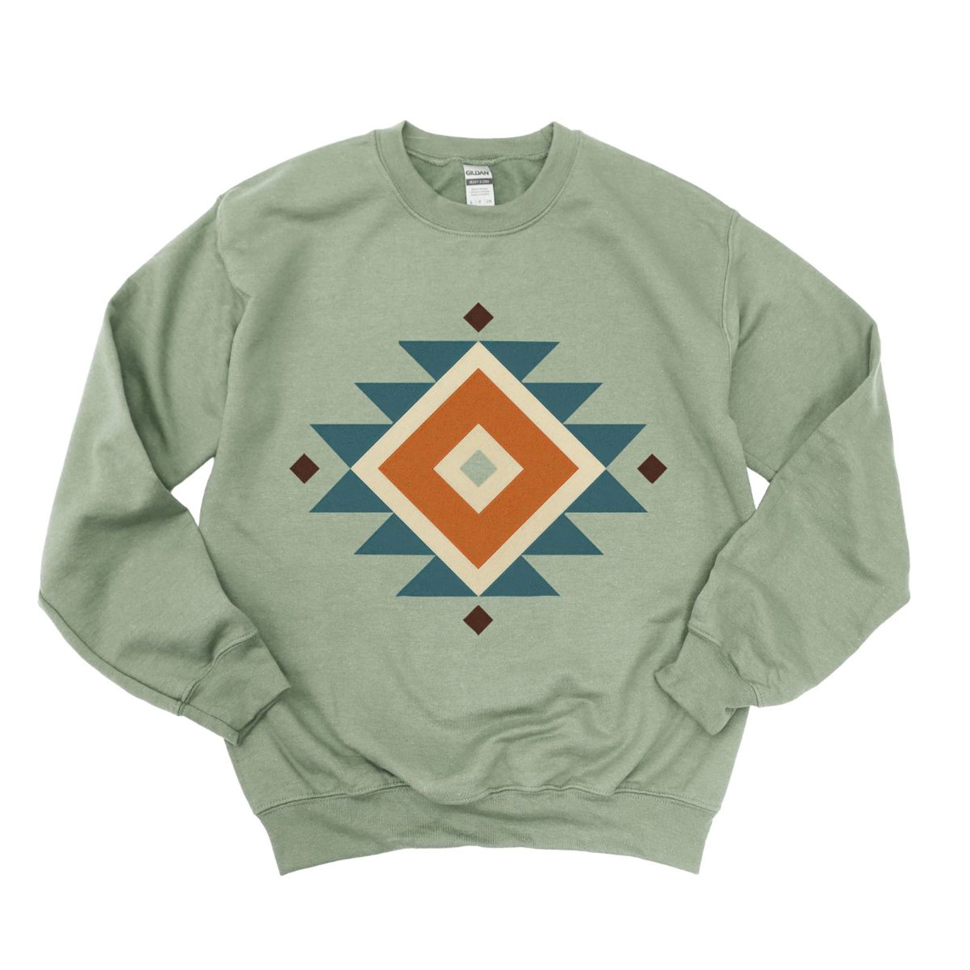 Diamon Shaped Aztec Country Western - Sweatshirt (Crewneck) Poly-Cotton Colors (Unisex) Gildan, Unisex Softstyle Midweight Crewneck Sweatshirt