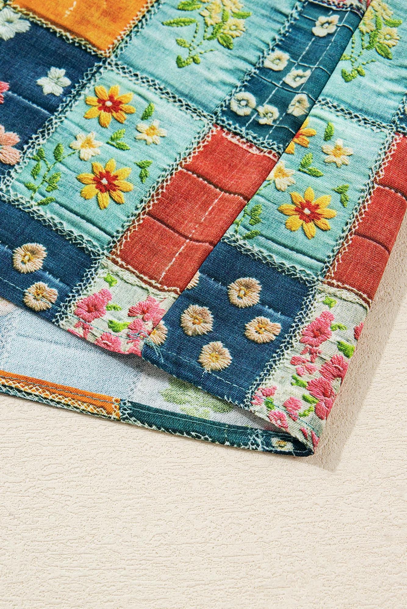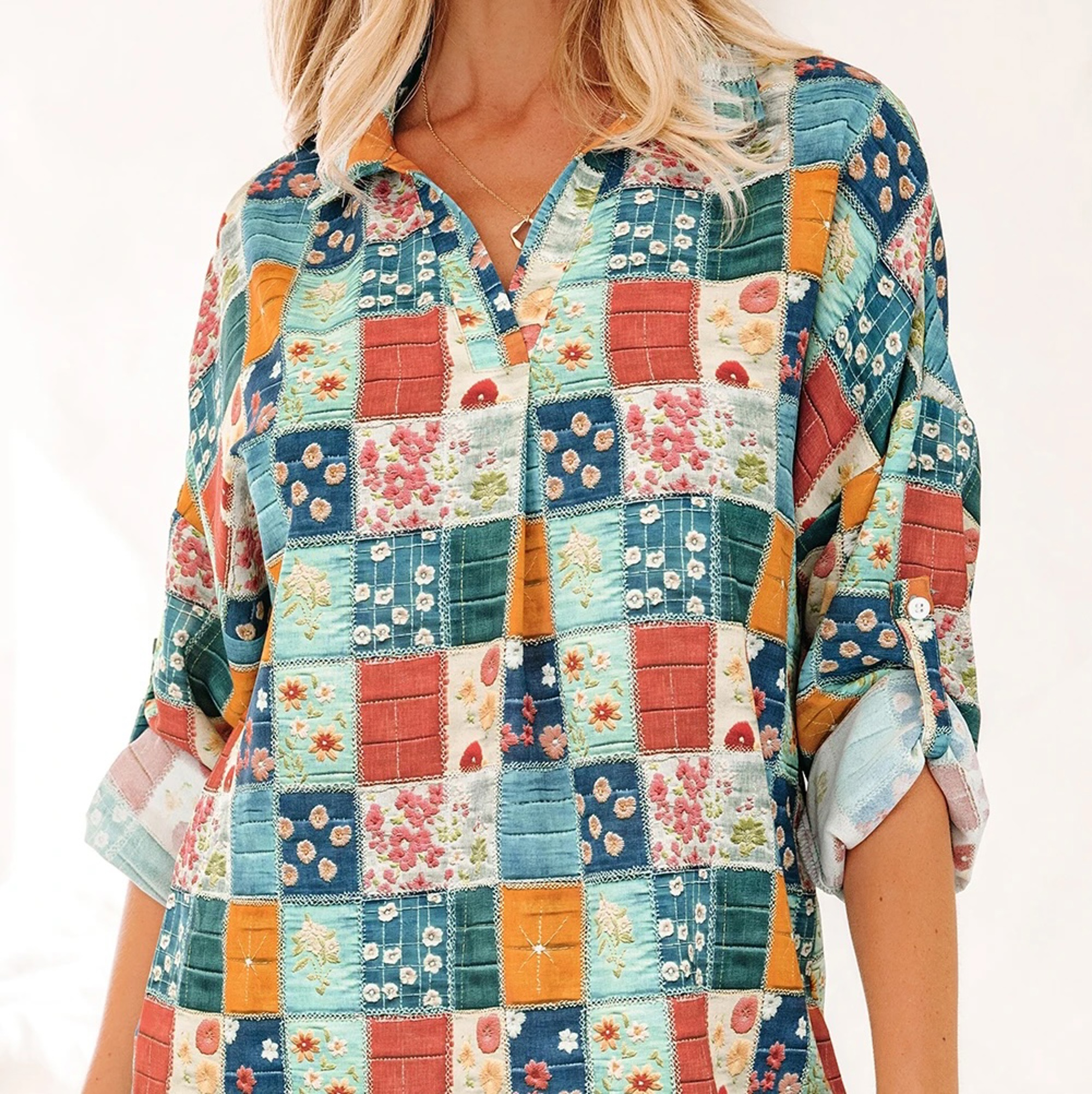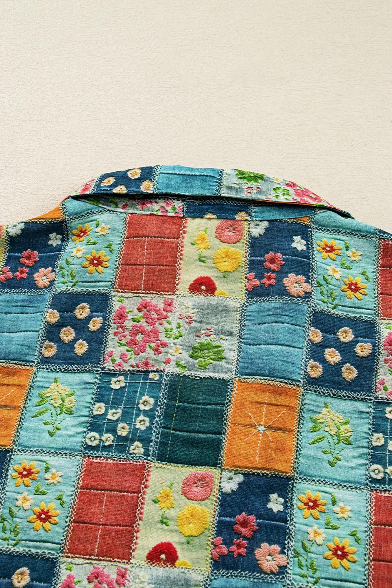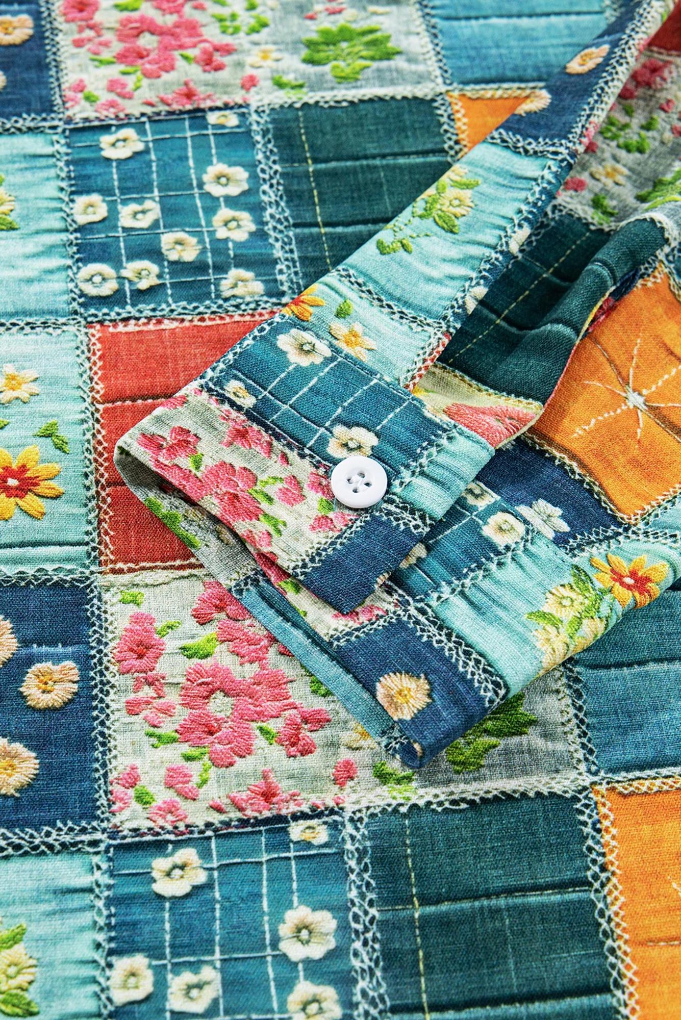 Bring a touch of charm to your wardrobe with this chic floral patchwork blouse.