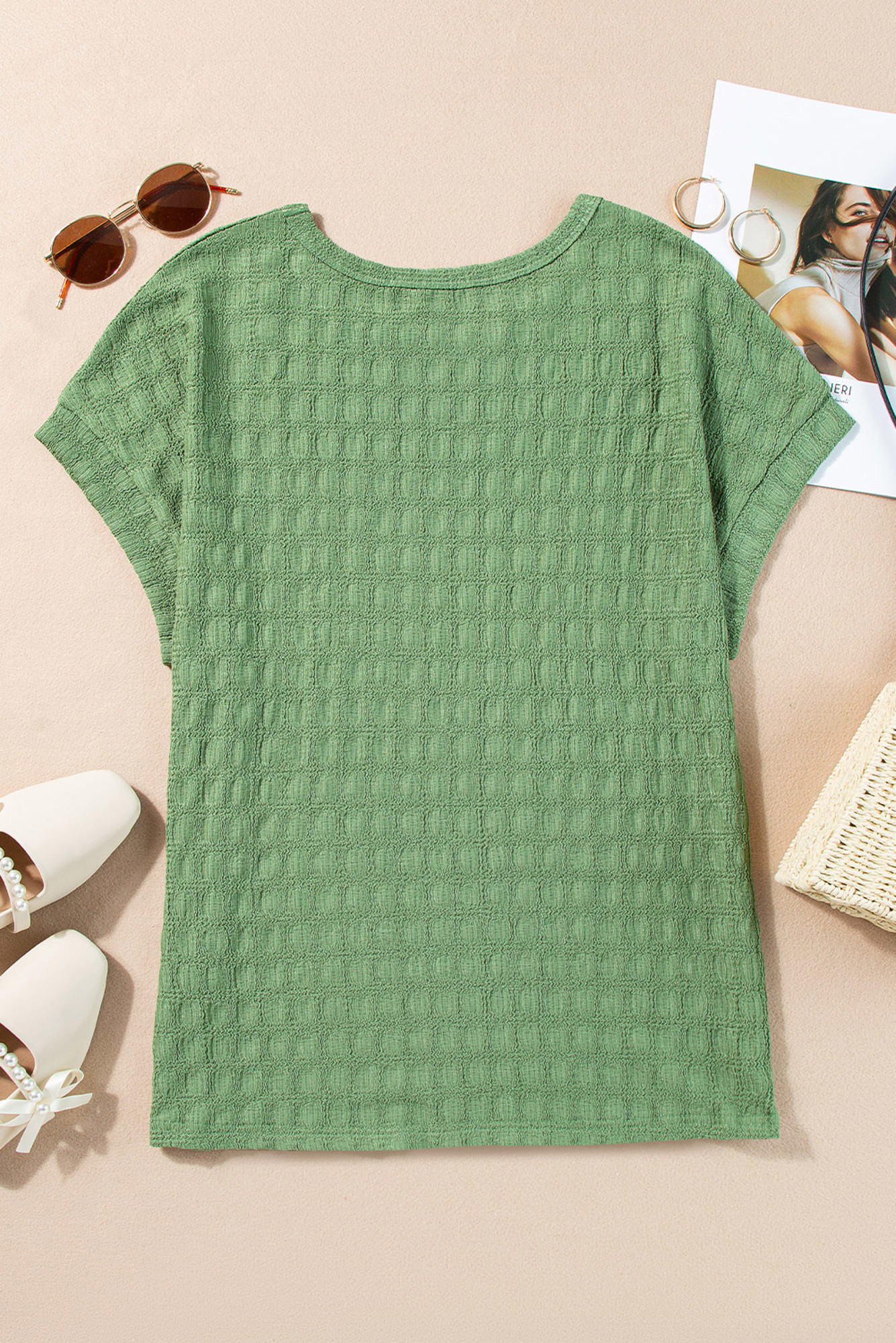 Experience effortless comfort and style with this casual tee. Crafted from soft, breathable fabric with high stretch, it moves with you for all-day ease. The solid color design highlights the fabric’s subtle texture, adding a touch of sophistication to a wardrobe essential. Perfect for pairing with jeans, skirts, or shorts, this versatile tee keeps your look fresh and fashionable.