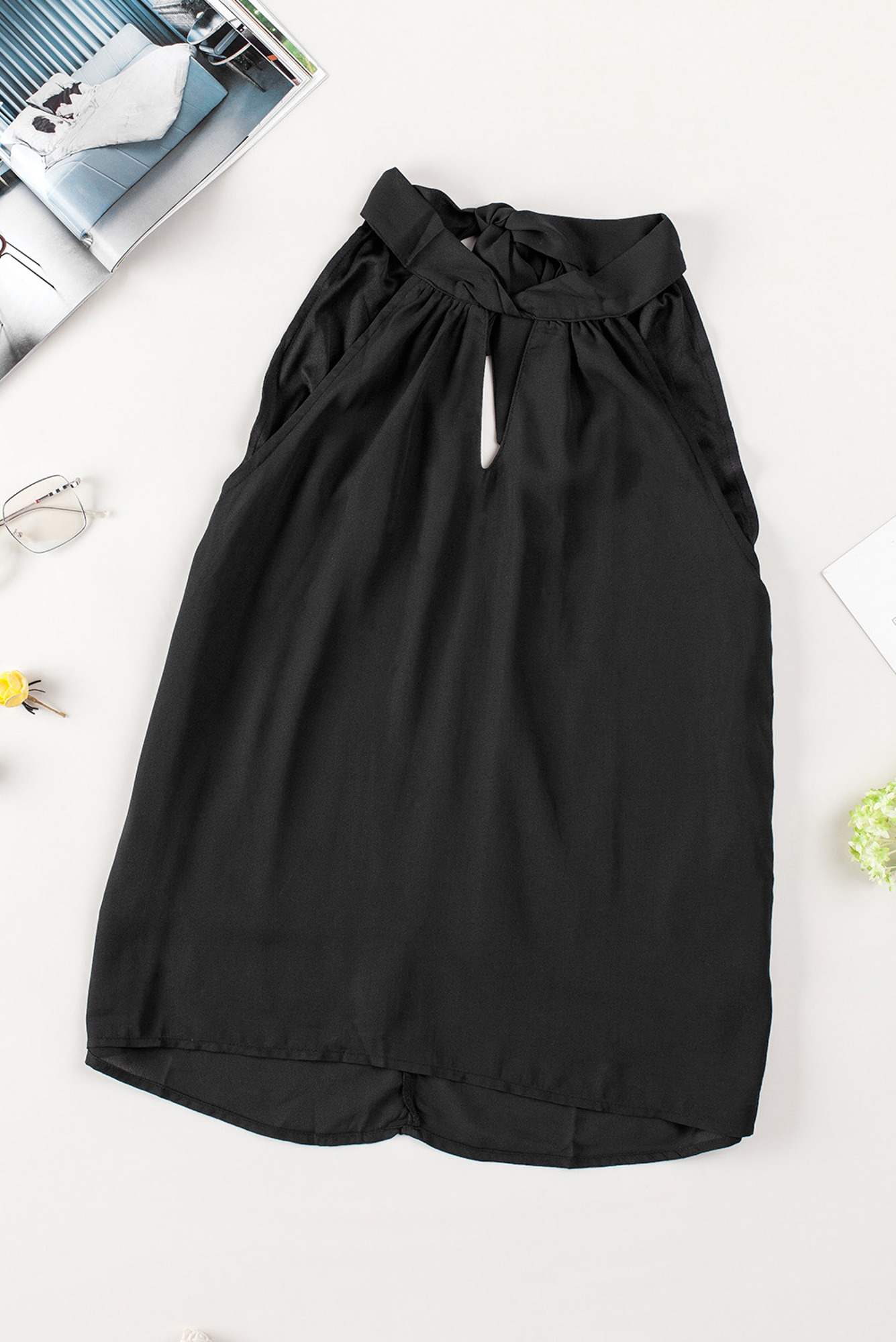 Stay cool and stylish this summer with our Sleeveless Halter Keyhole Top. Featuring a chic halter neck with a self-tie strap and a subtle front keyhole, it adds a modern, fashionable touch to your outfit. The sleeveless design keeps you comfortable in the heat, while the solid color makes it easy to pair with jeans, pants, or shorts for effortless summer style.