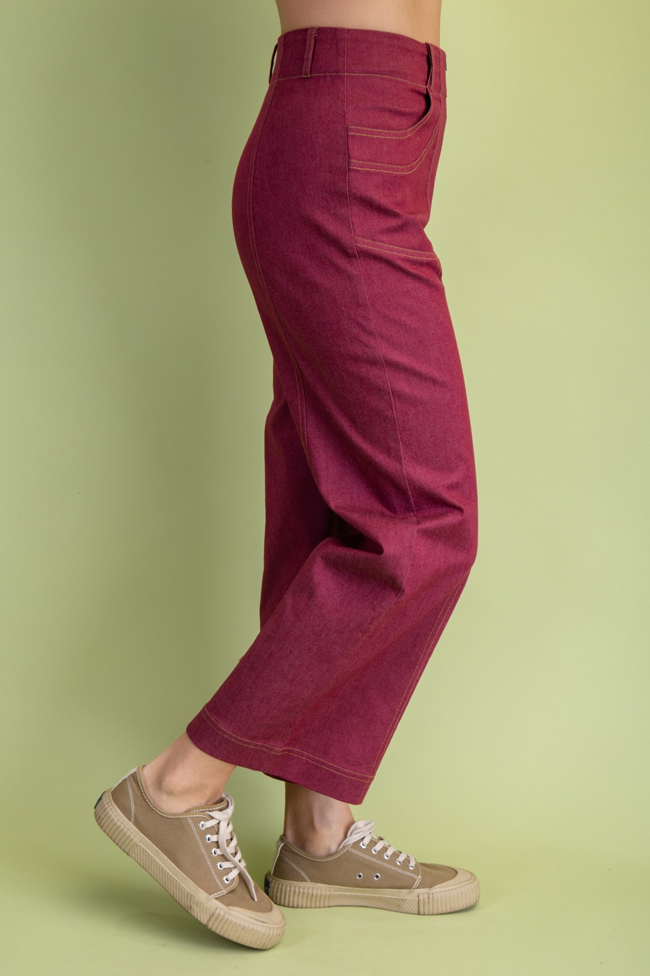 Step up your style with these ankle-cropped pants in a stretchy denim-like fabric. Featuring contrast stitching, front patch pockets, and a bold exposed zipper, they blend comfort with modern edge. Perfect for pairing with heels or sneakers for an effortlessly chic look.