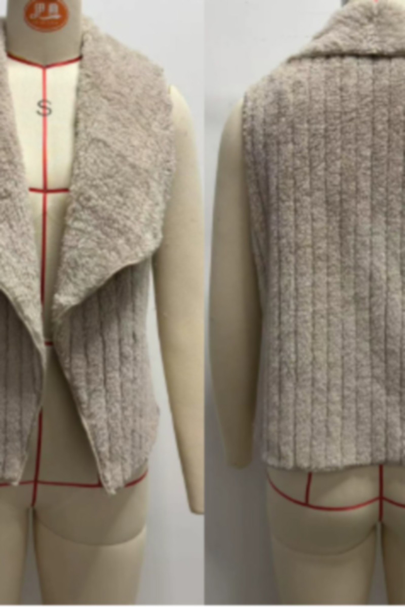 Wrap yourself in effortless style with our Cozy Vest. Designed with a plush, teddy-soft texture. This open-front vest adds the perfect layer of warmth without sacrificing chic appeal. The oversized lapel collar creates a flattering silhouette, while the neutral tones makes it versatile for pairing with all your fall and winter essentials.