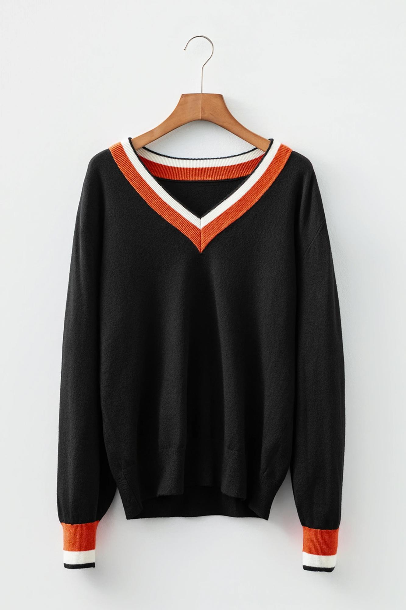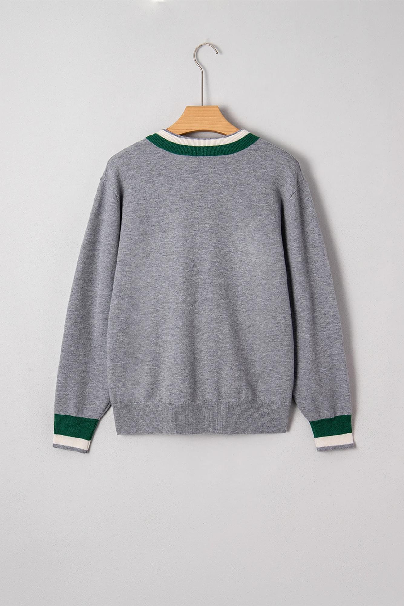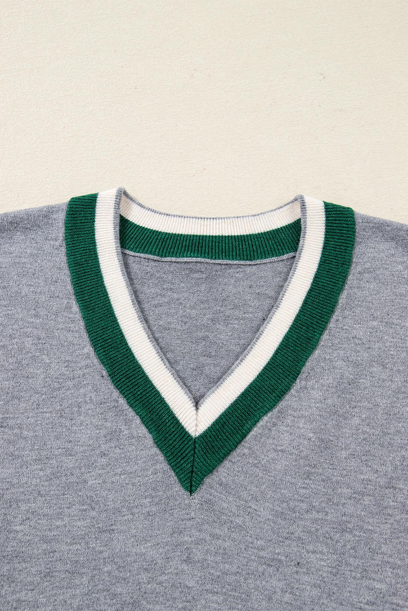 MY DREAM LIFE | Contrast Striped Trim V Neck Varsity Light Sweater | S-XL