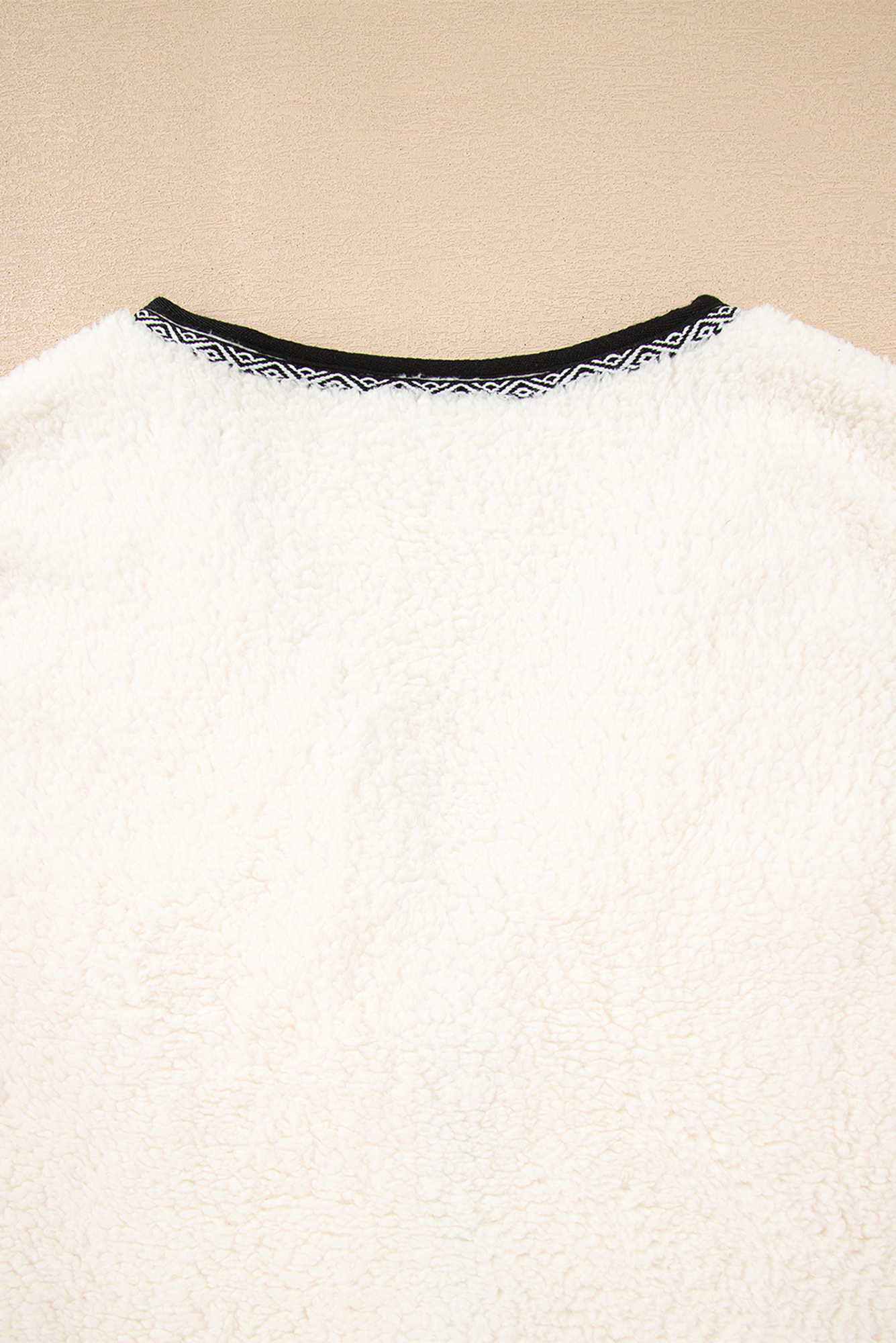 Wrap yourself in warmth with this irresistibly soft fuzzy vest — it feels just like a cozy blanket draped around you. Designed with a relaxed silhouette and flattering V-neckline, this piece offers both comfort and effortless style. The two hand pockets with contrast trim add a chic touch while keeping your hands toasty. Made from plush sherpa fabric, it’s the perfect layering essential for autumn and winter days