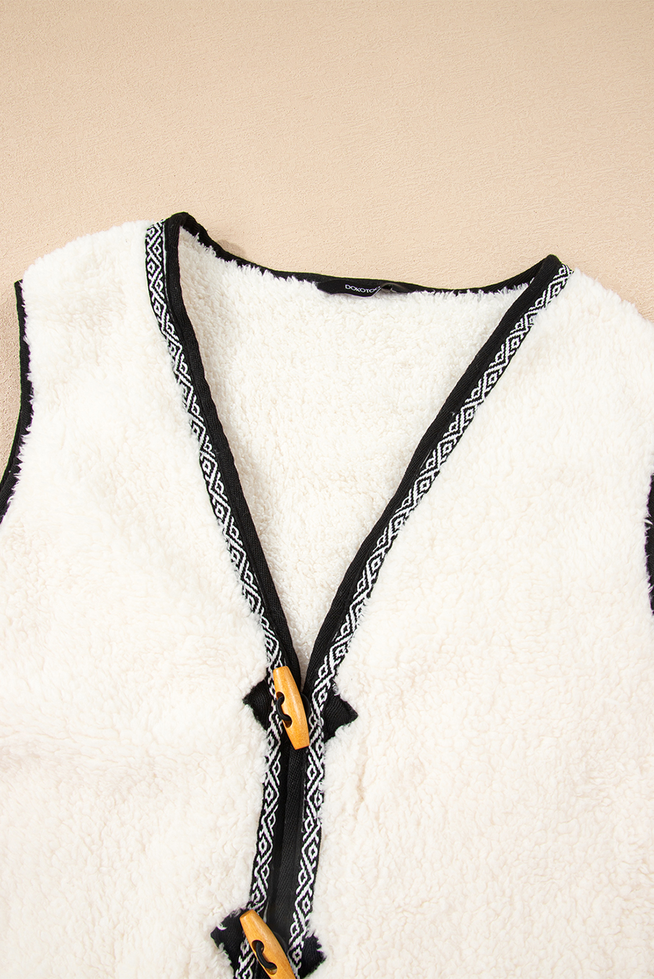 MY DREAM LIFE | Sherpa Contrast Trim Patch Pocket Cartridge Toggle Button Vest