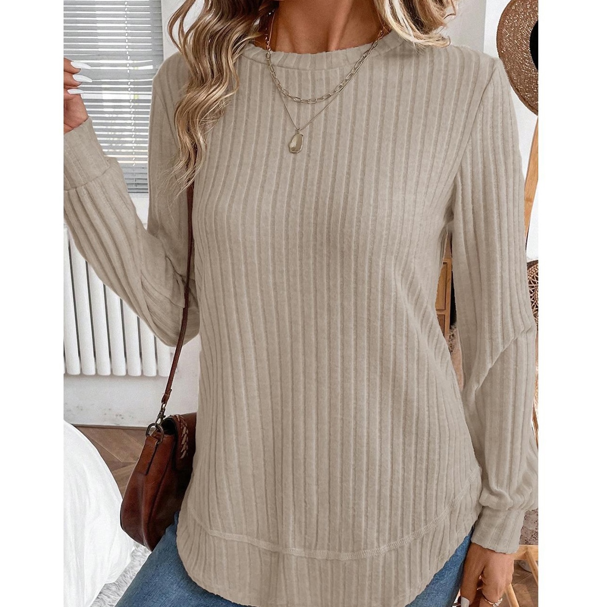 Elevate your everyday style with this chic ribbed knit top. Designed with a flattering slim fit, it features a classic round neckline, long sleeves, and a softly rounded hem for a sleek finish. The ribbed texture adds a touch of sophistication, while the elastic and breathable fabric ensures all-day comfort. Its solid color makes it a versatile wardrobe staple—easy to dress up with tailored pants or keep casual with your favorite jeans.