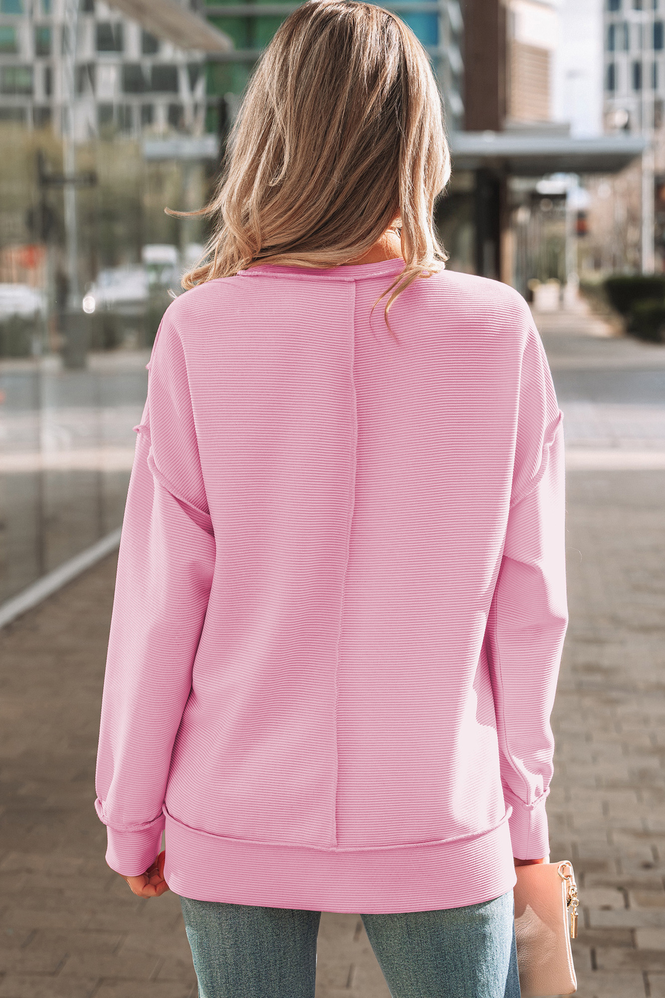 This horizontal ribbed pullover delivers a cozy, textured feel perfect for everyday wear. Exposed seam details add a modern, deconstructed touch, while the drop-shoulder design creates a relaxed, effortless silhouette. Made from soft, stretchy fabric, this pullover is comfortable, easy to layer, and ideal for all-day styling.