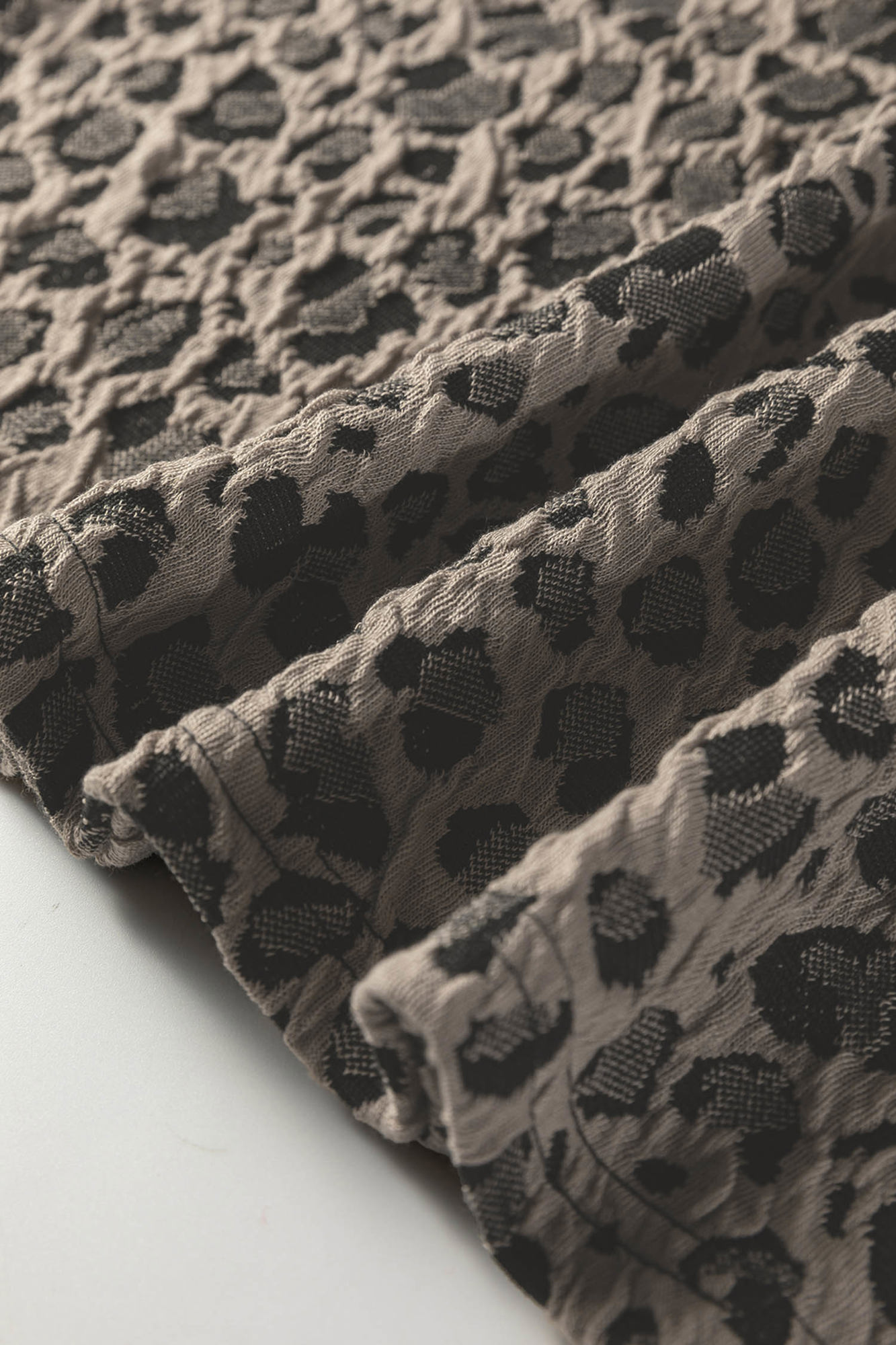 This stylish leopard print top features a unique textured fabric finish that adds depth and visual interest. Designed with a classic crew neckline and short sleeves, it offers an easygoing, timeless silhouette. Crafted from a soft, breathable material, it keeps you cool and comfortable all day long. Effortlessly chic, this top pairs perfectly with jeans or shorts for a polished everyday look.