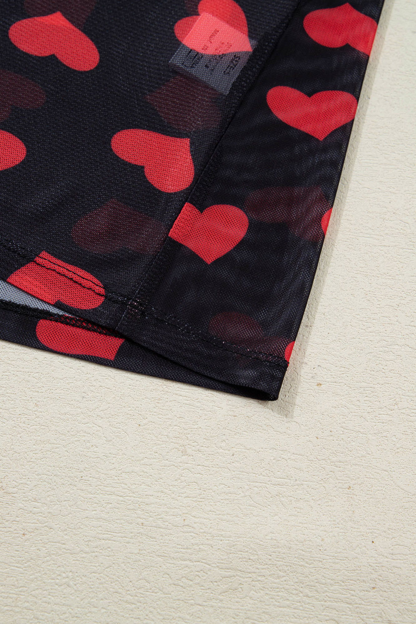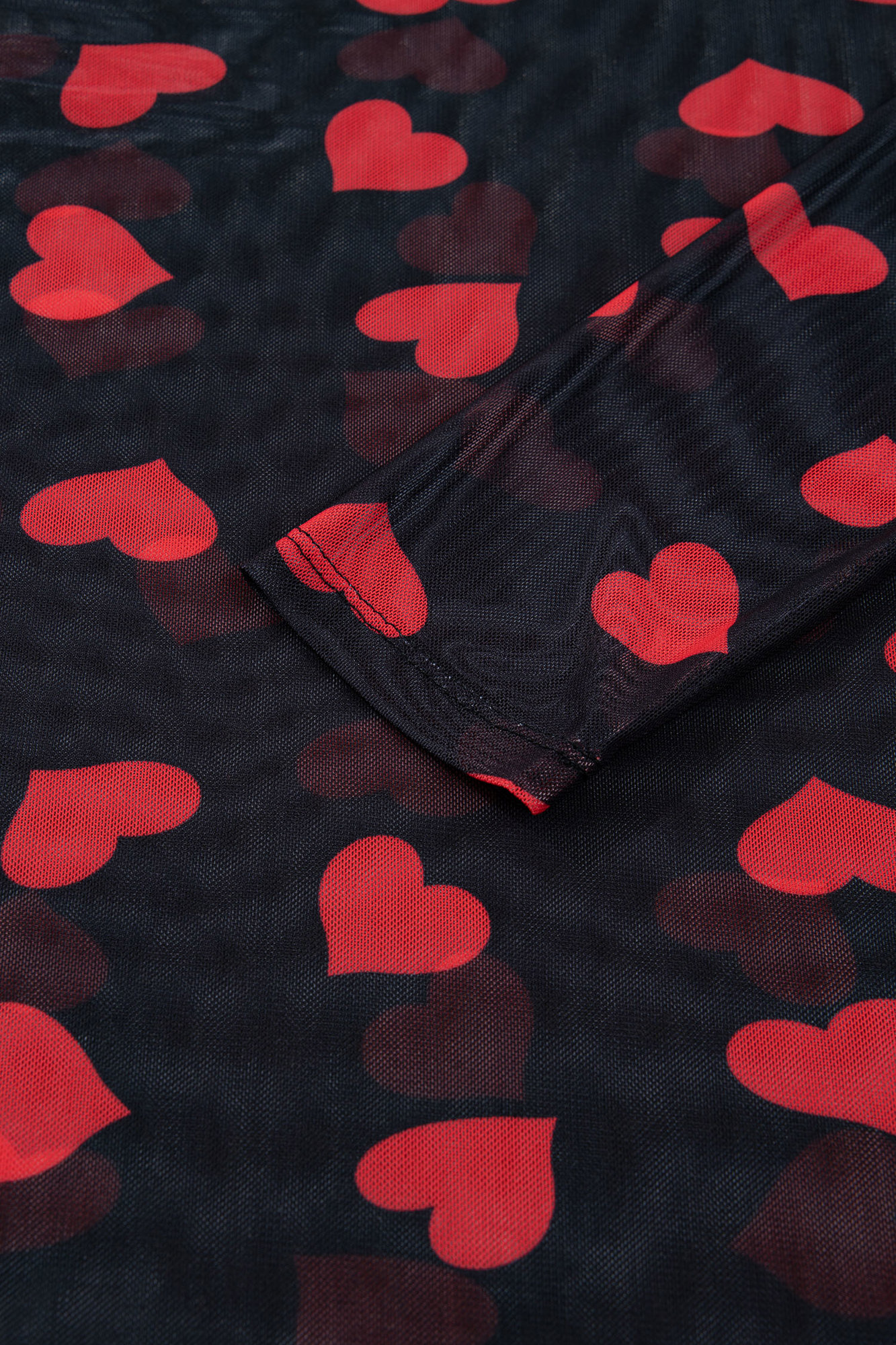 Valentines Heart Printed Sheer Mesh Long Sleeve Top | S-XL