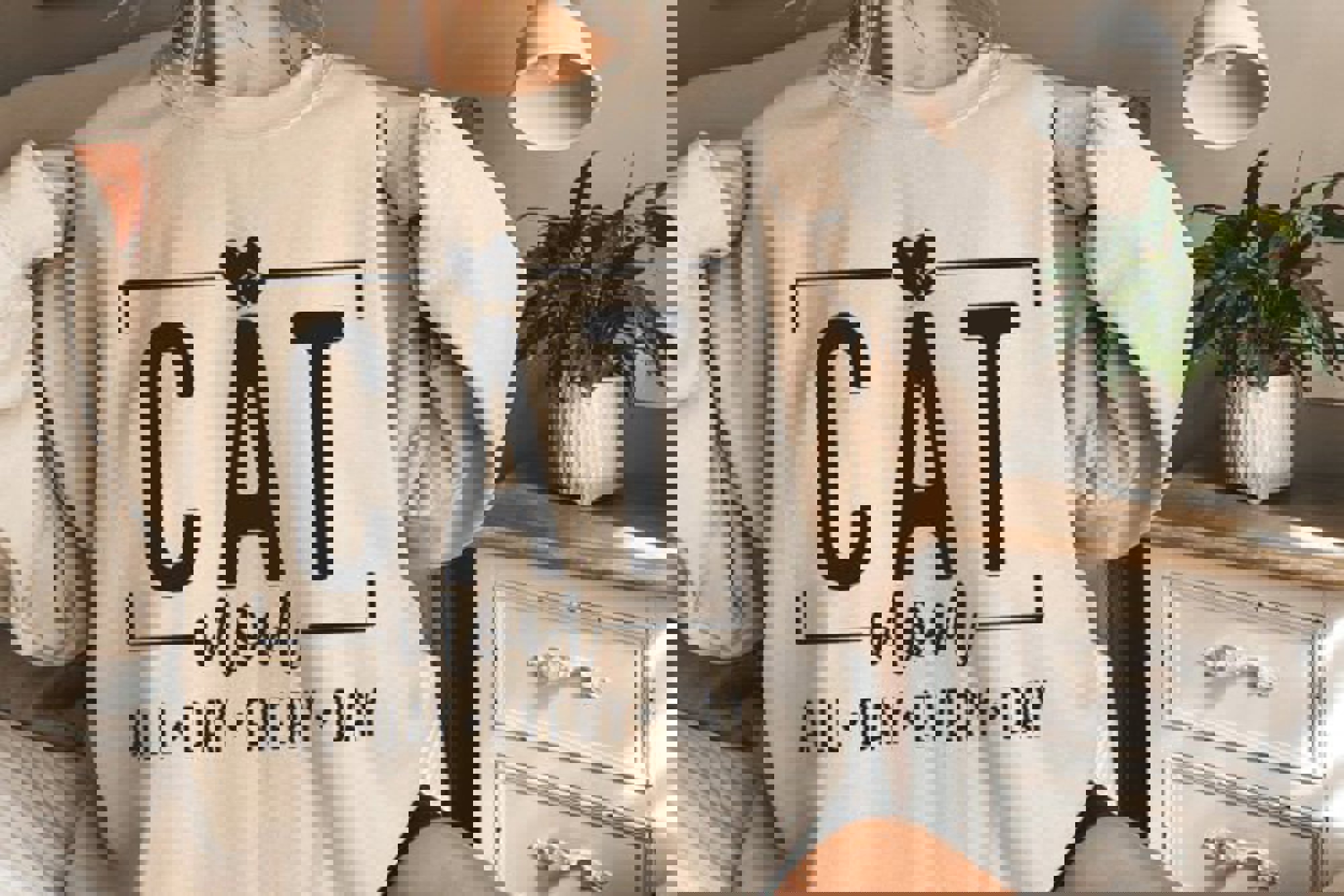 Cat Mom All Day Every Day - Cozy Crew Neck Sweatshirt, Funny Pet Lover Top, Cute Neutral Graphic Shirt, Gift for Cat Lovers and Fur Moms