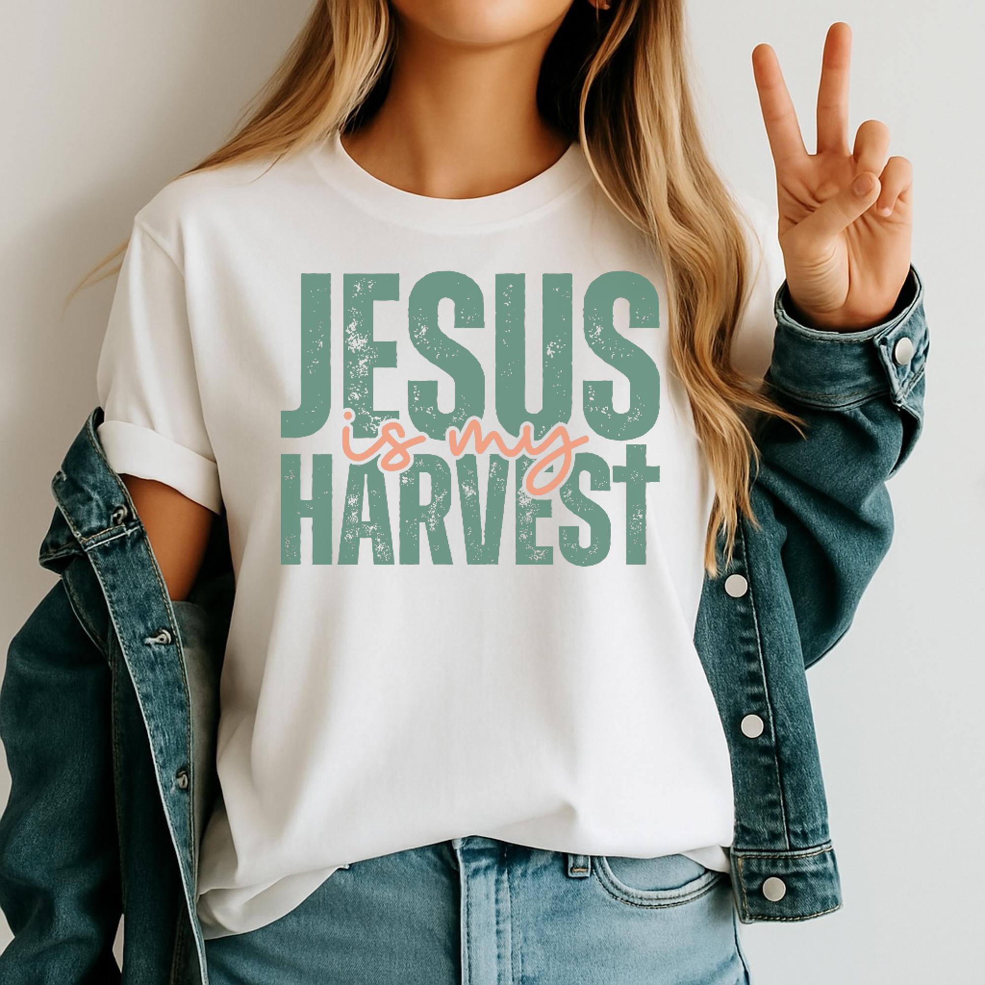 Jesus is My Harvest Christian Graphic Tee – Faith-Based Fall Shirt, Inspirational Bible Verse Top, Rustic Thanksgiving Outfit for Women