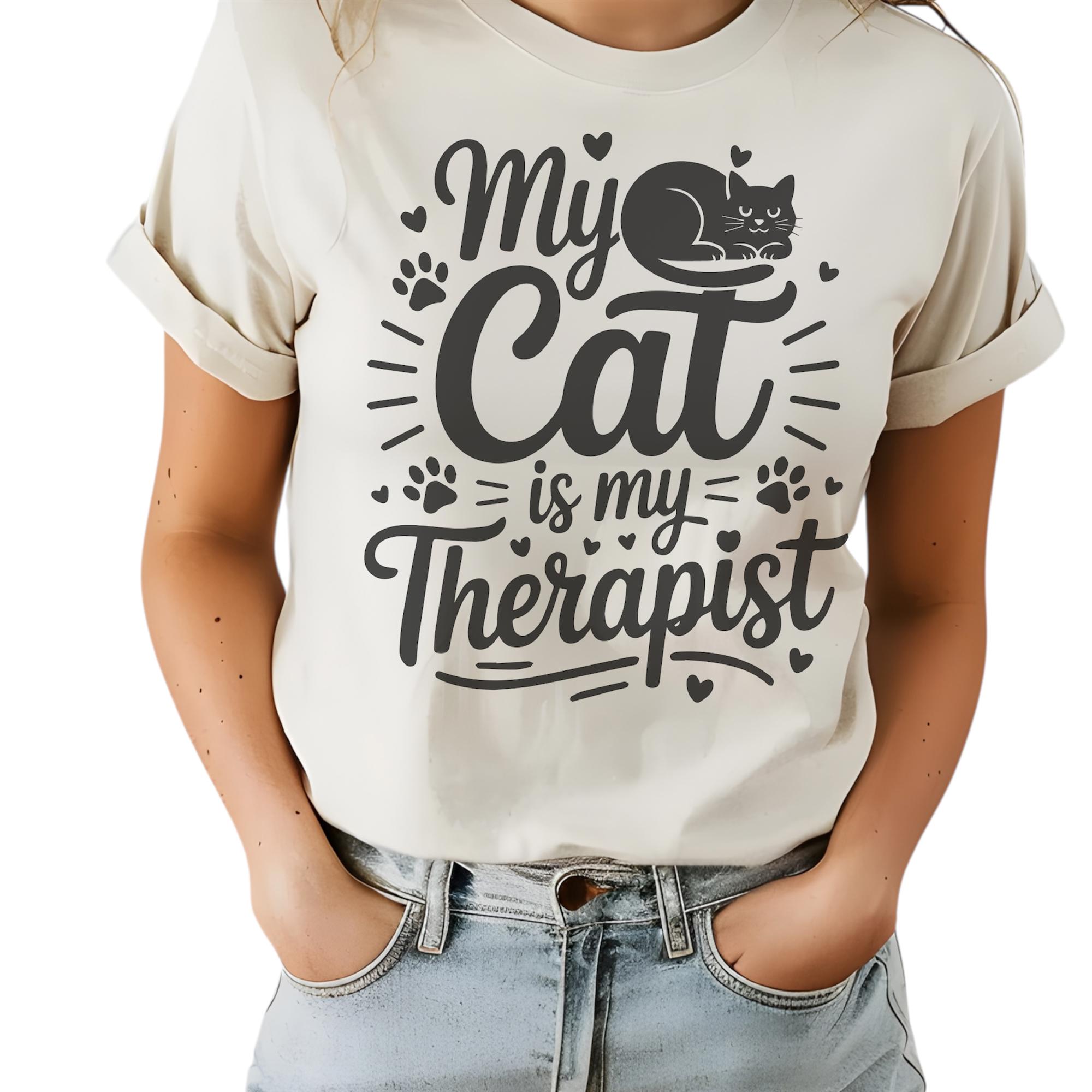 My Cat is My Therapist Graphic Tee Funny Cat Lover Shirt, Cute Pet Owner Gift, Cozy Vintage Cat Mom Top, Animal Lover Comfort Tee
