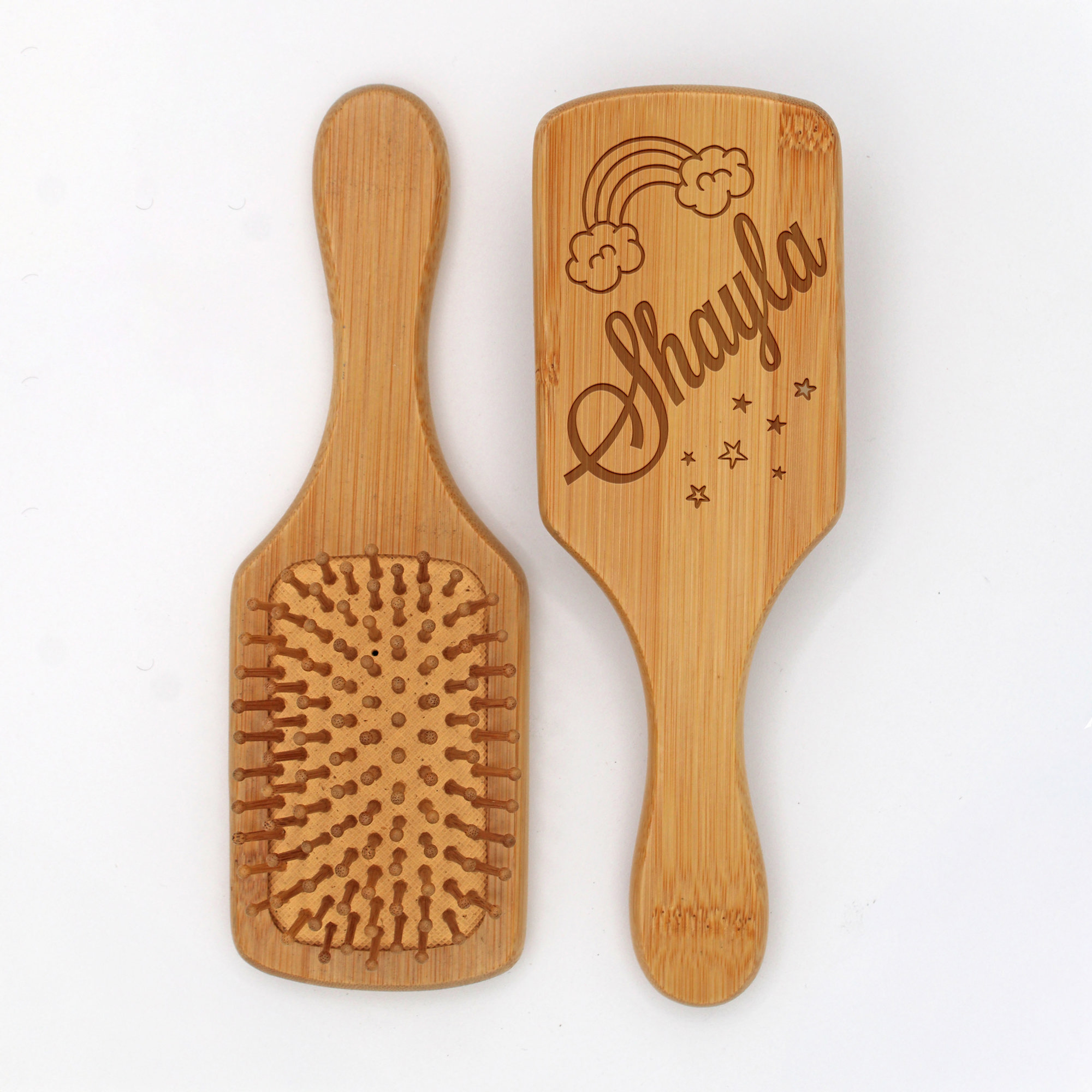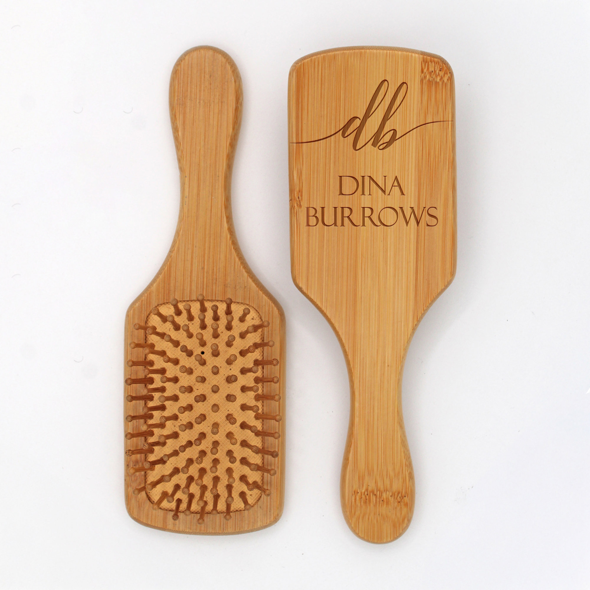 Make your hair care routine more personal with this beautifully crafted wooden hair brush featuring custom laser engraving. Perfect as a thoughtful gift for women and girls, this brush adds a special touch to daily styling. The smooth wooden construction helps detangle hair while the personalized name makes it uniquely yours. The classic design works well for all hair types, whether you're doing a quick morning brush-through or creating an elaborate style. The natural wood handle provides a comfortable grip for easy handling. This customized hair brush makes for a memorable present that combines both style and function. A distinctive addition to any vanity or travel kit, it's ideal for birthdays, holidays, or any special occasion that calls for a personal touch.