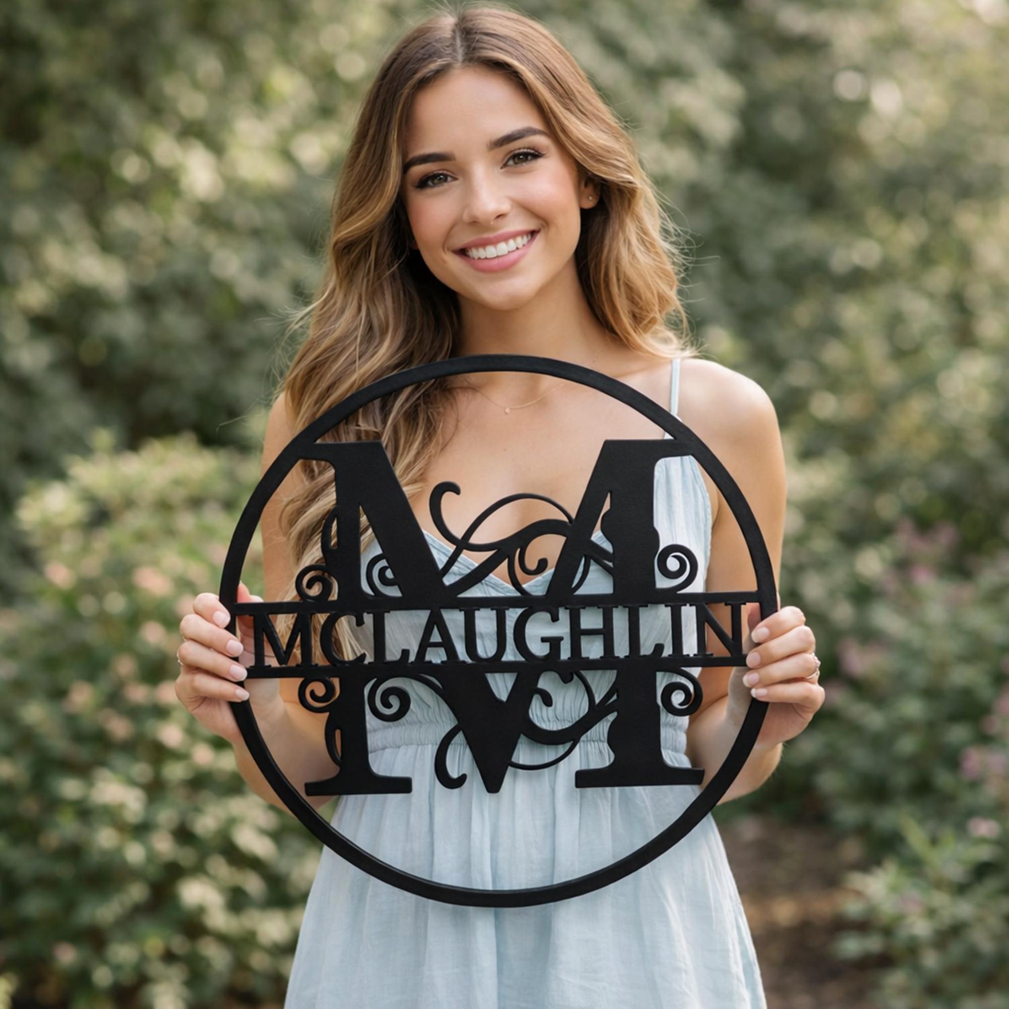Our Metal Monogram Signs are custom crafted from high-quality steel to create a bold, timeless statement for your home. Designed with precision and attention to detail, each sign features a personalized monogram that adds a unique and elegant touch to any space. Also a great personalized gift.