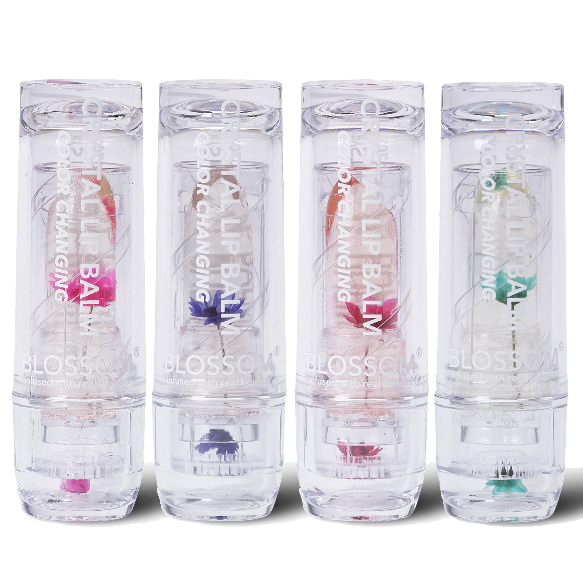 Each order arrives with 4 total color changing lip balms; one pink, red, purple and turquoise. Our innovative Color-Changing Crystal Lip Balm uses your own pH levels to enhance the natural beauty of your lips with a customized shade of pink. Infused with real dried flowers, this balm boosts hydration while delivering a light strawberry aroma. With four shades to choose from, you'll be able to find the perfect look for you.