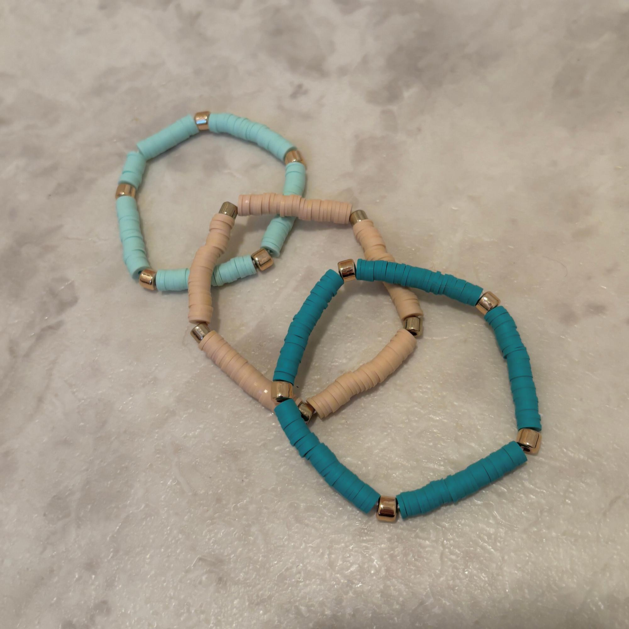 3 Pack Bracelet Set in Sage / Mint / Nude | Shades of Green Clay-like Beaded Jewelry
