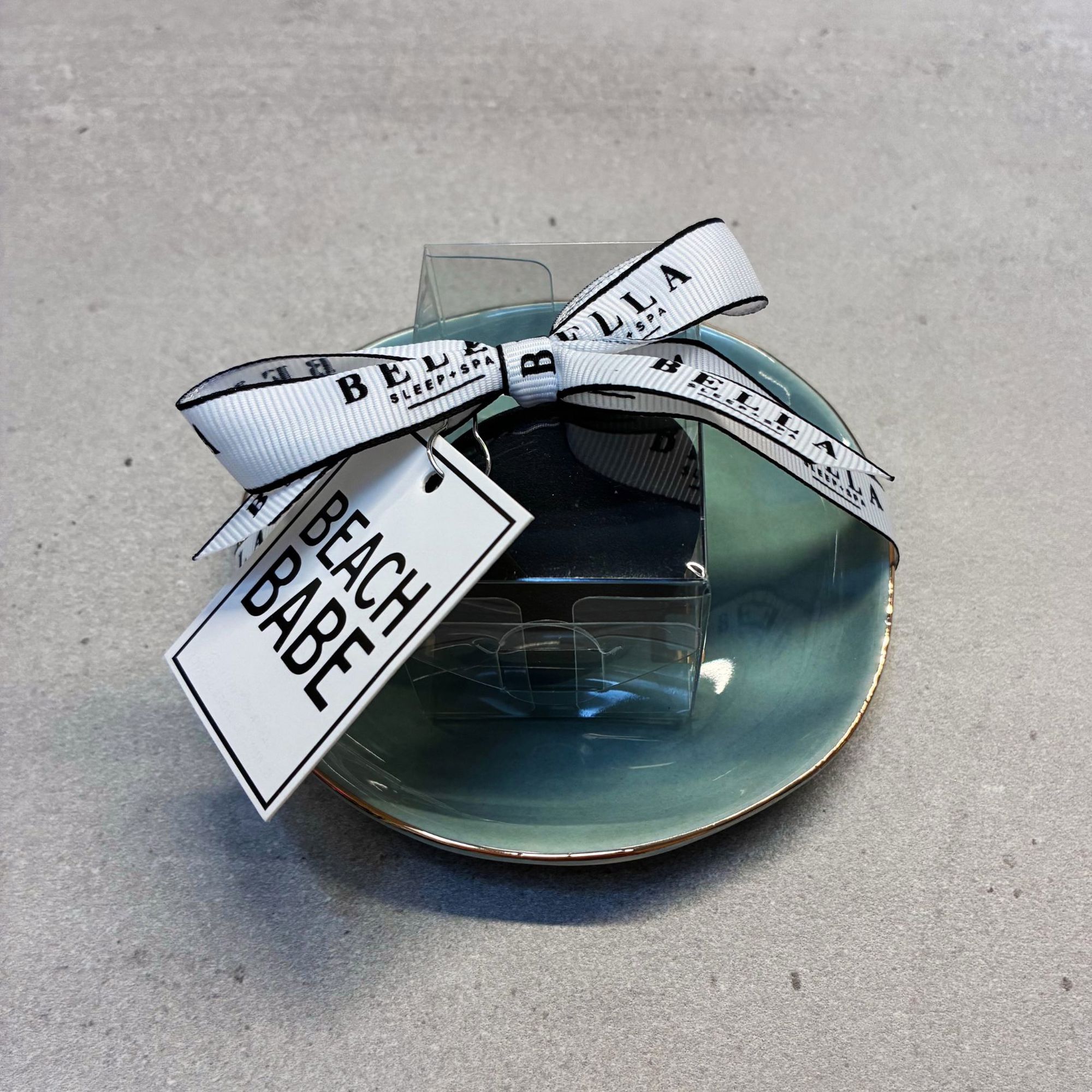 Beach Babe Sage Green Ceramic Tray with Makeup Sponge Gift Set | Cosmetic Giftable Beauty Tools Set
