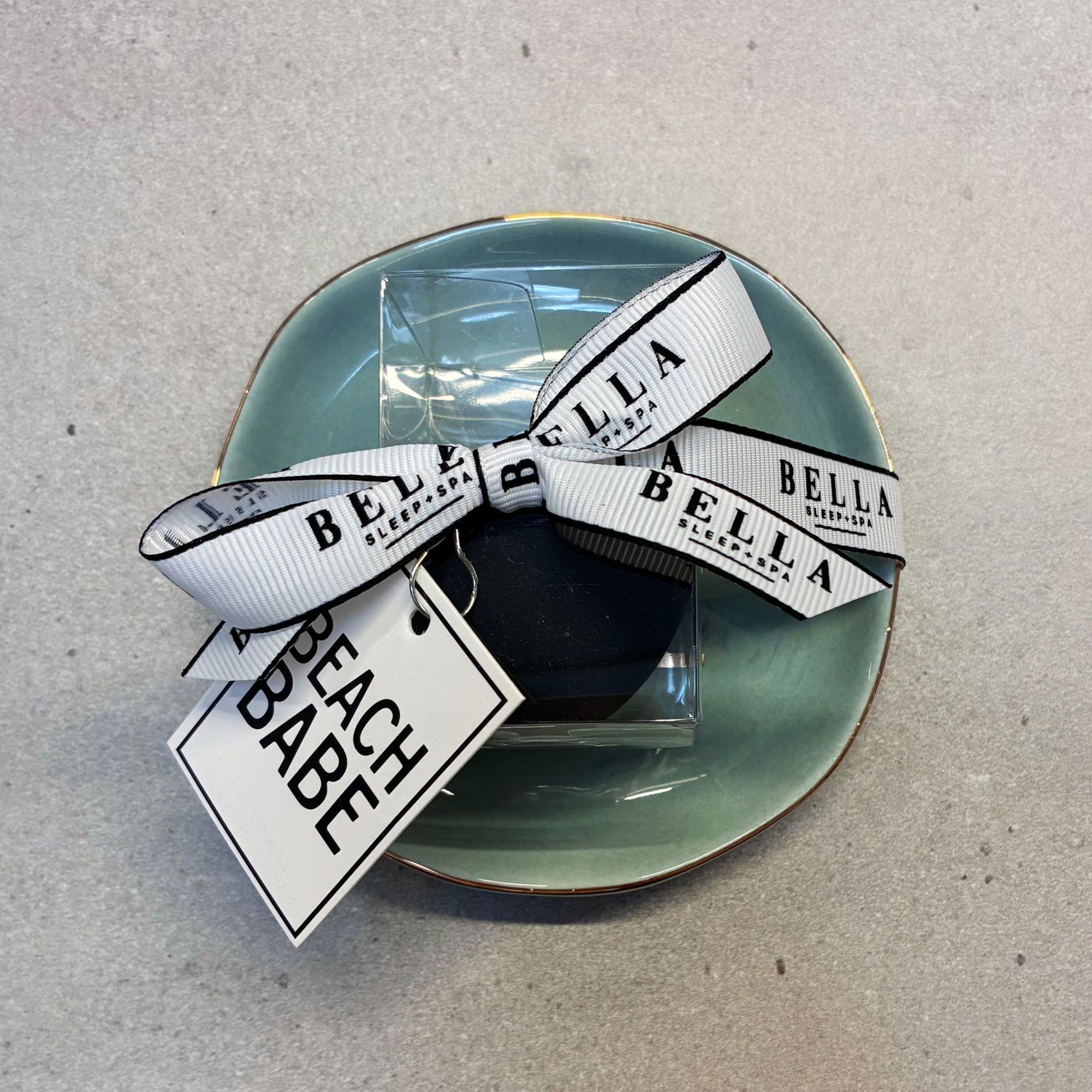 Elevate your makeup routine with the Beach Babe Sage Green Ceramic Tray and Black Sponge beauty blender set. This giftable beauty tools set is perfect for storing your sponge in style after smoothing on your makeup for a flawless finish. The ceramic tray features a charming "Beach Babe" design in gold print on sage green ceramic, complete with a gold rim for a touch of elegance. This set is a must-have for anyone looking to add a touch of luxury to their daily beauty routine or makes a thoughtful gift for the makeup lover in your life.