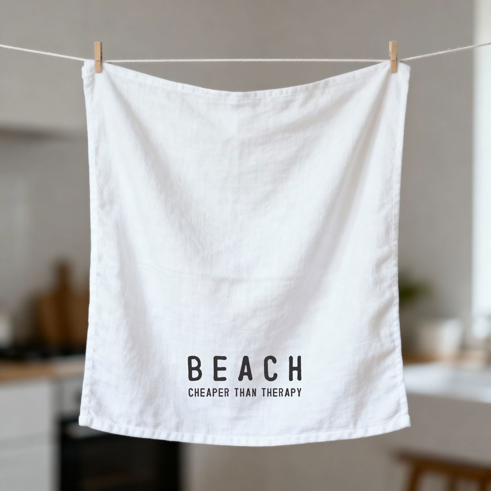 Beach Cheaper Than Therapy Tea Towel | Ultra Absorbent Kitchen Dish Cloth | 30'' sq