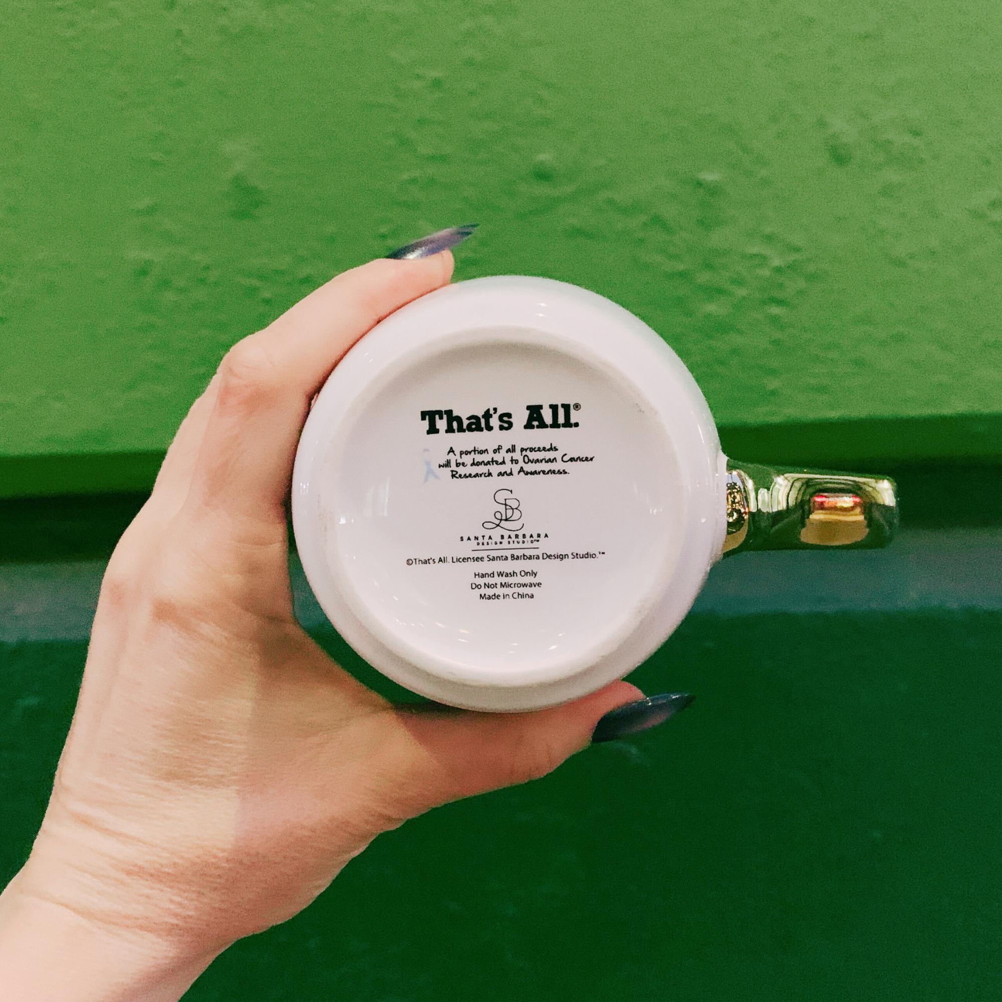 With cute sayings in metallic gold text, and a surprise at the bottom of every mug.