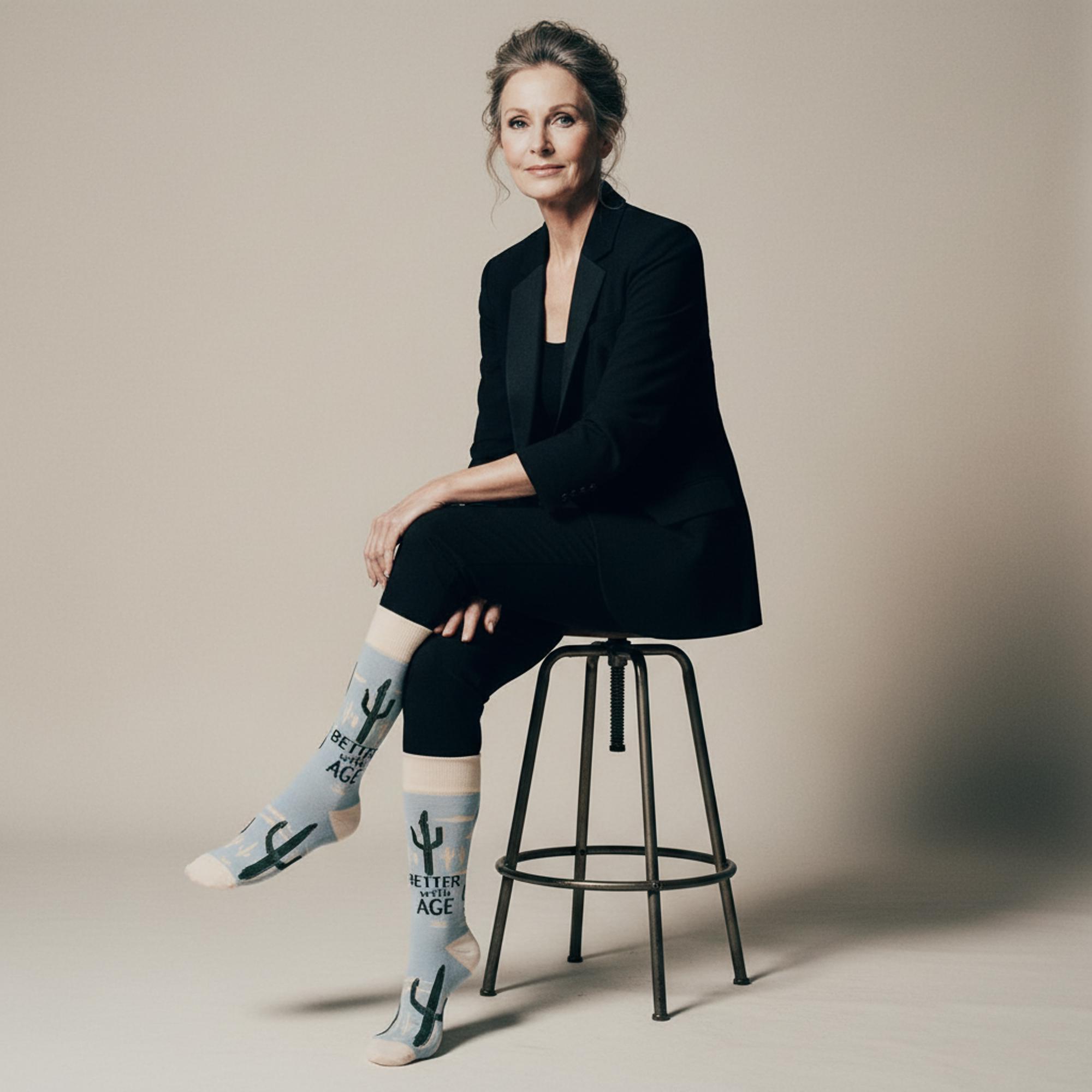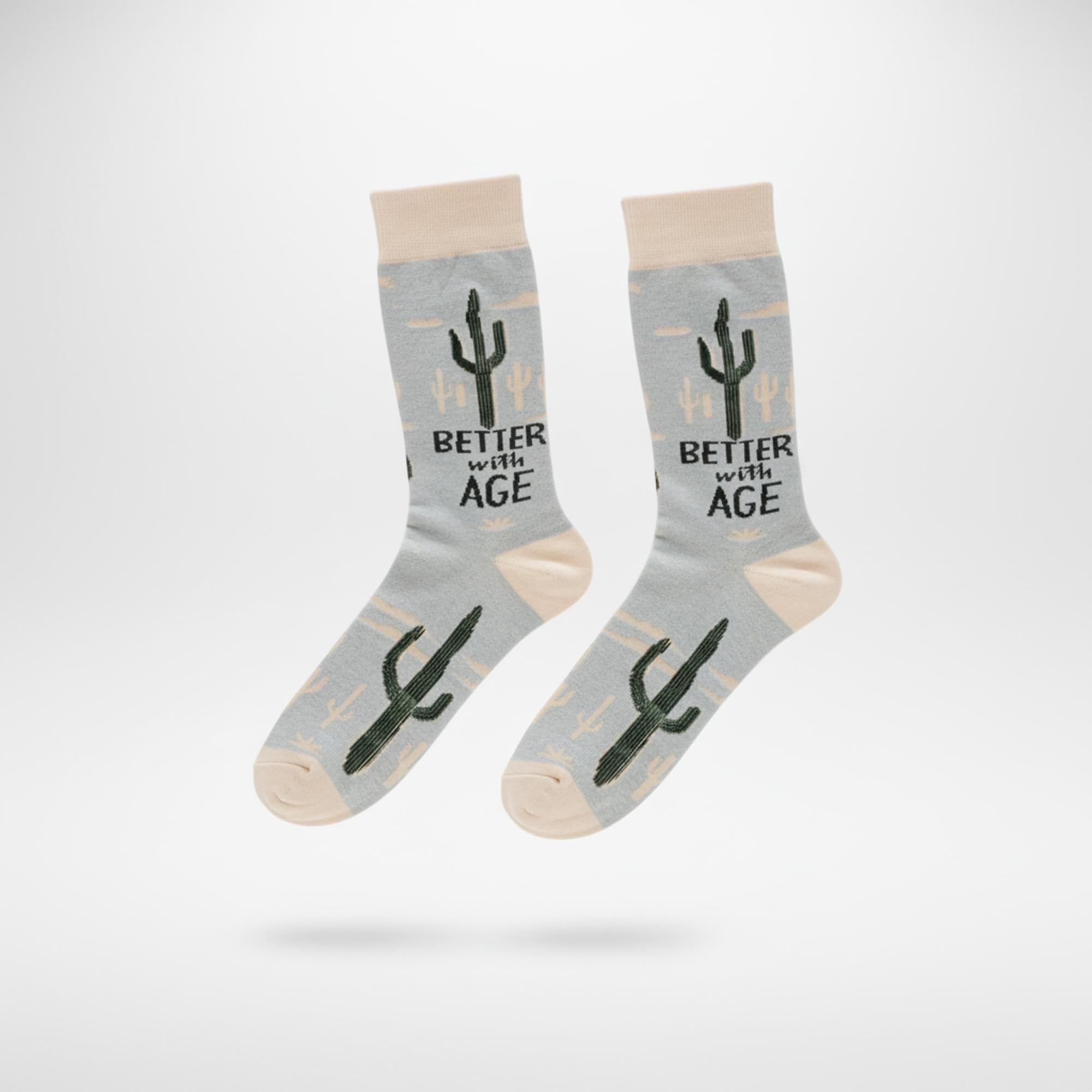 Better With Age Socks | Cactus Plants Illustration | Novelty Crew Socks | Gifts for Her