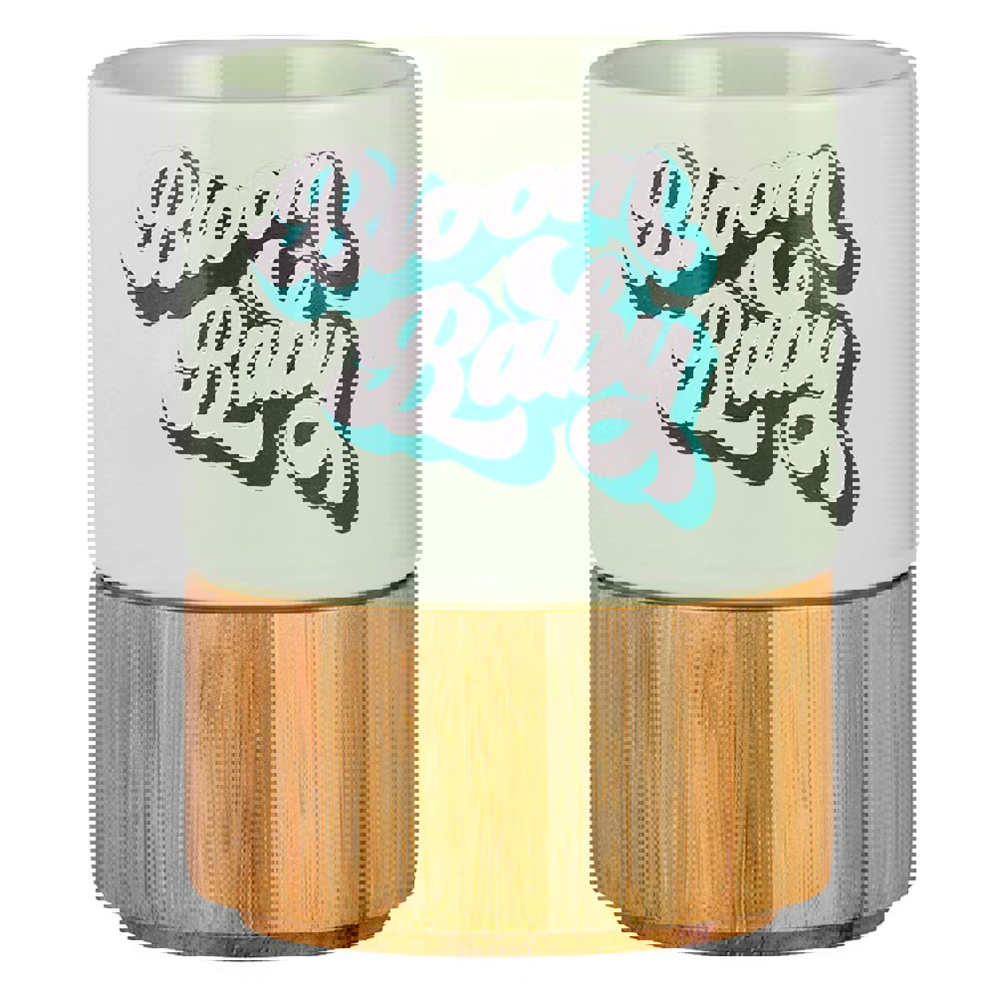 Light green mug with "Bloom Baby" in white lettering