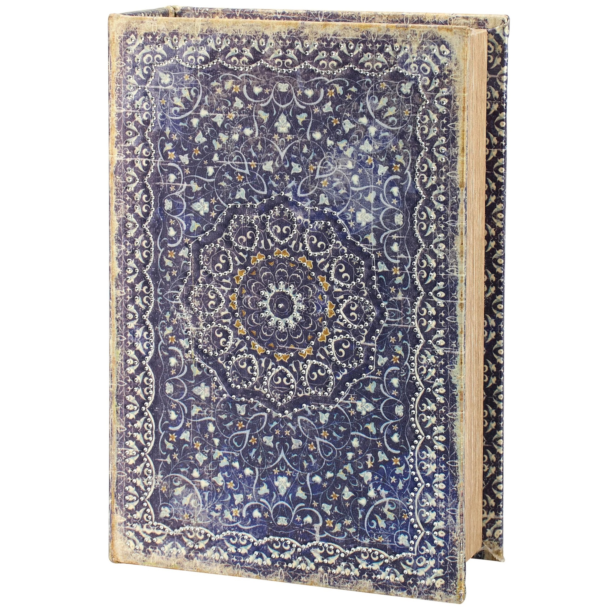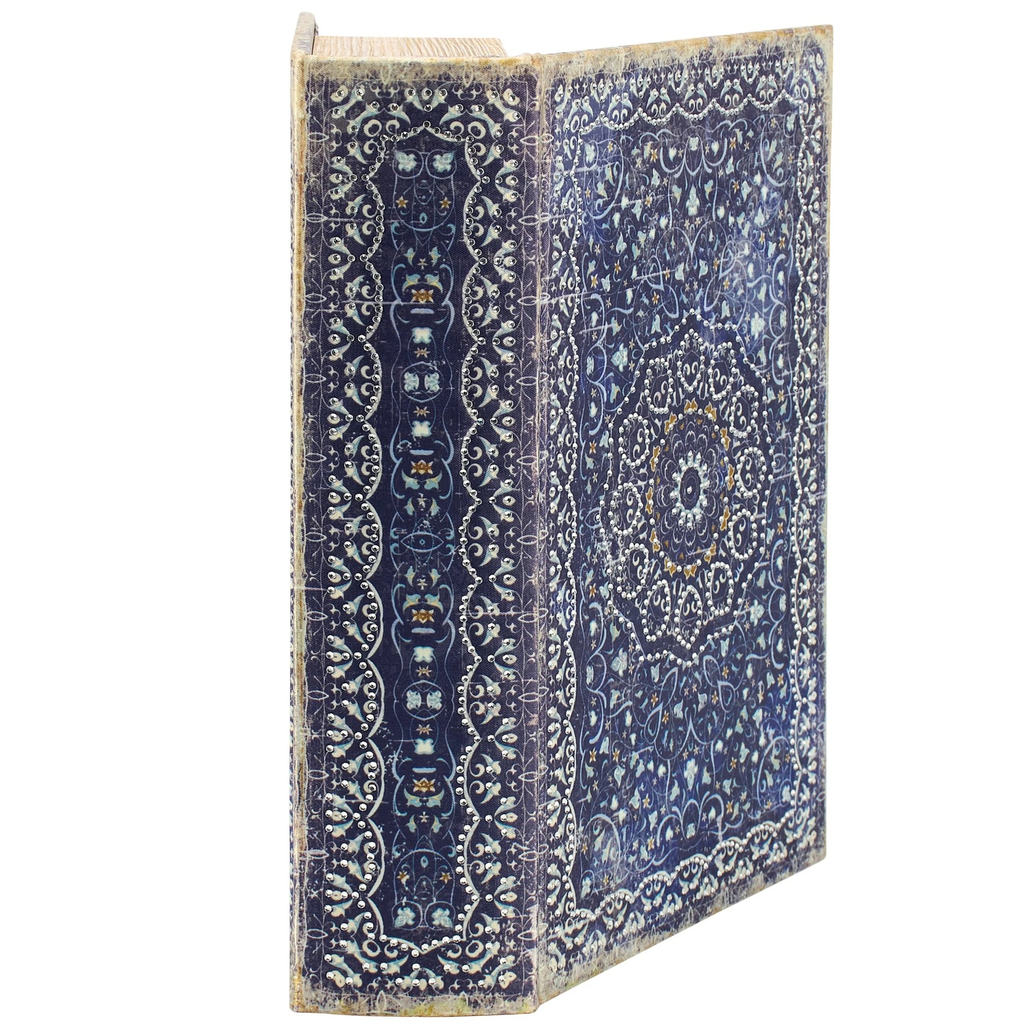 Blue Medallion Book Box | Decorative Vintage Book Shaped Storage Stash Trinket Boxes