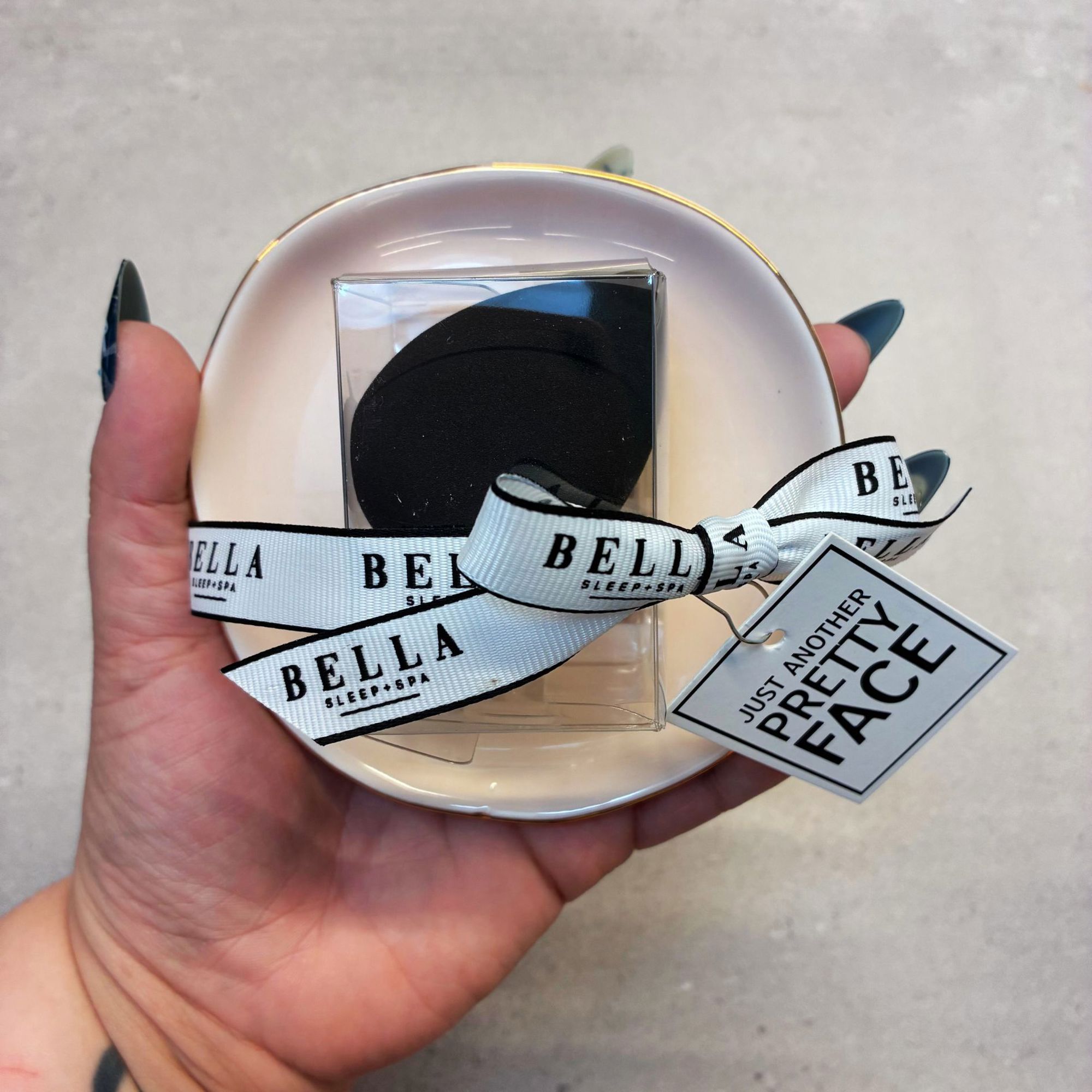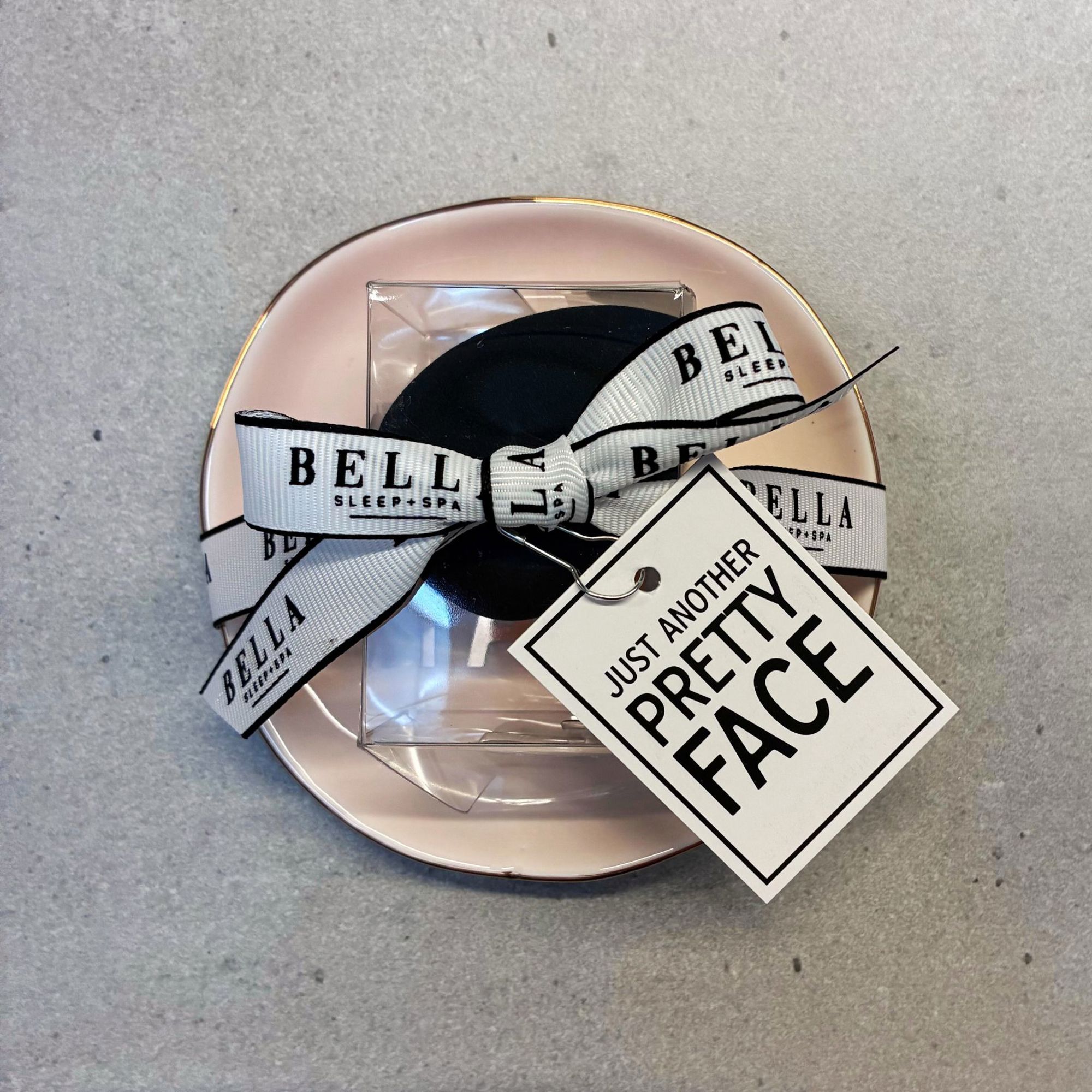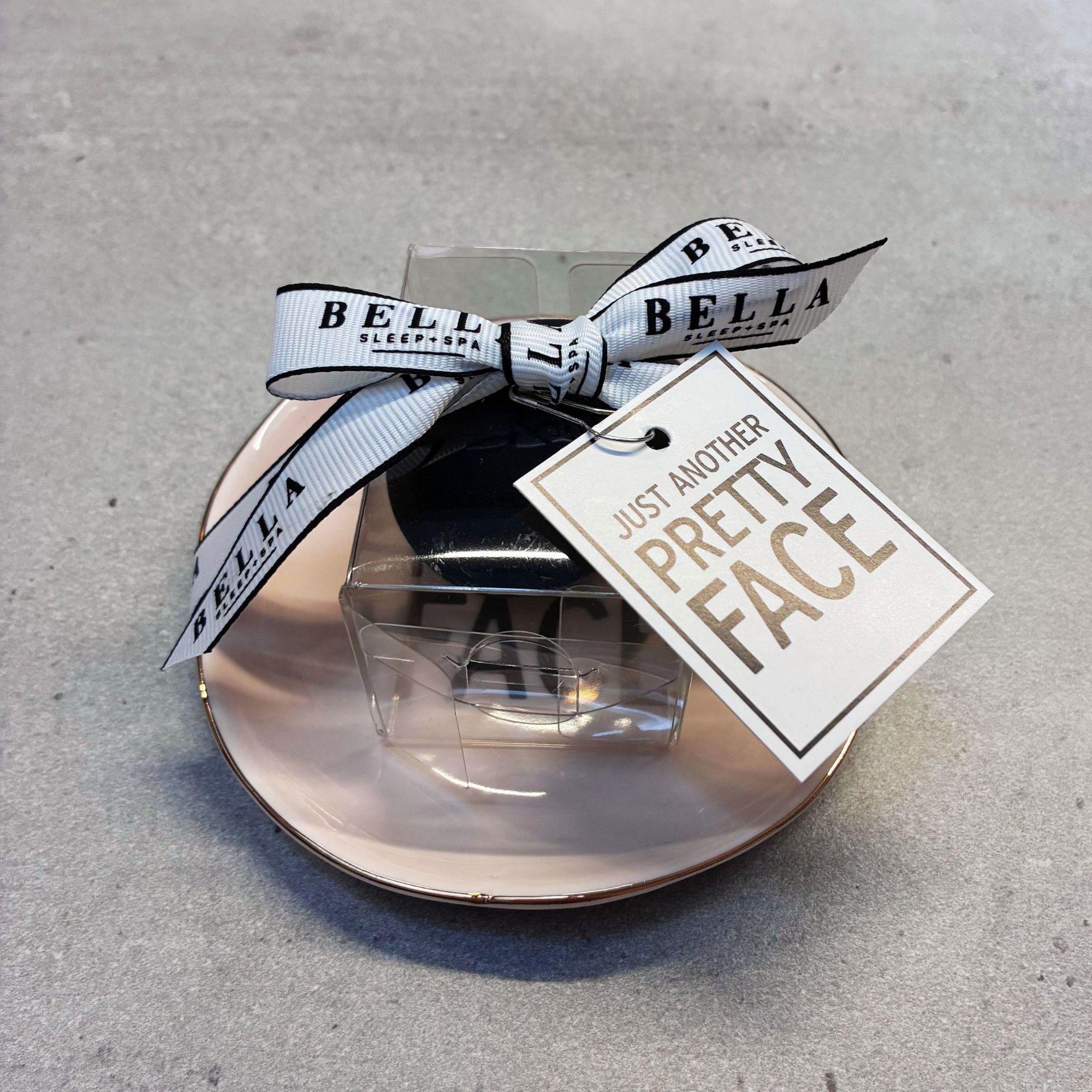 This blush ceramic tray with makeup sponge gift set is a must-have for any beauty lover's collection. The ceramic tray, featuring the phrase "Just Another Pretty Face", adds a touch of glam to any vanity while the black sponge beauty blender ensures a flawless makeup application every time. Makes a thoughtful gift for the makeup enthusiast in your life!