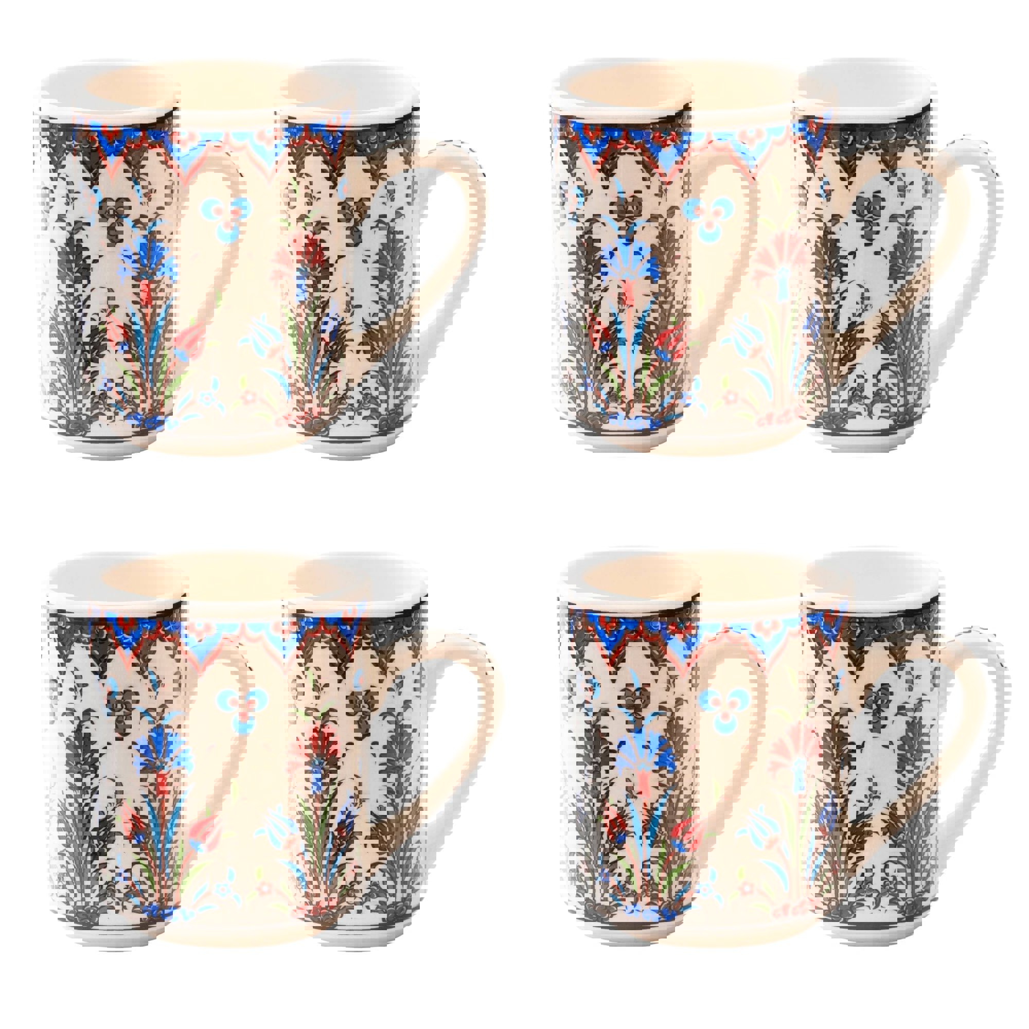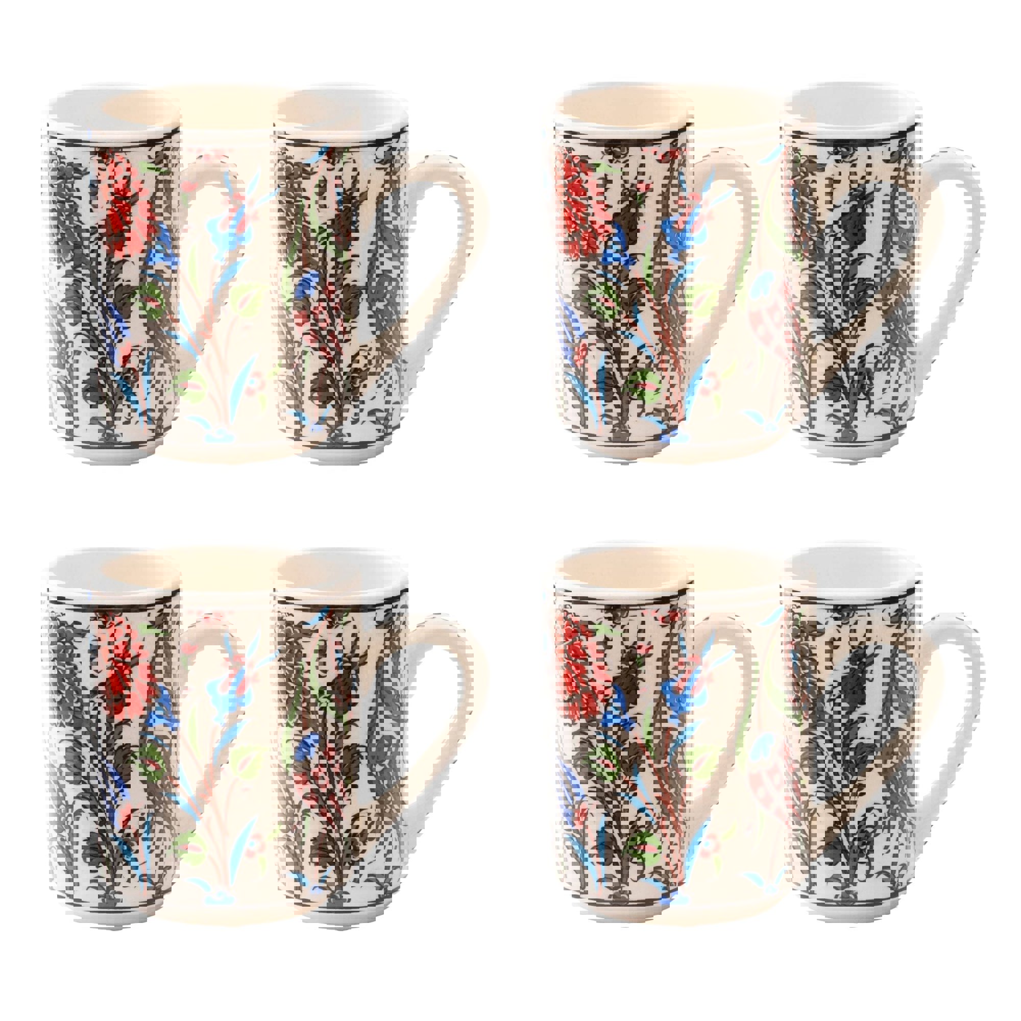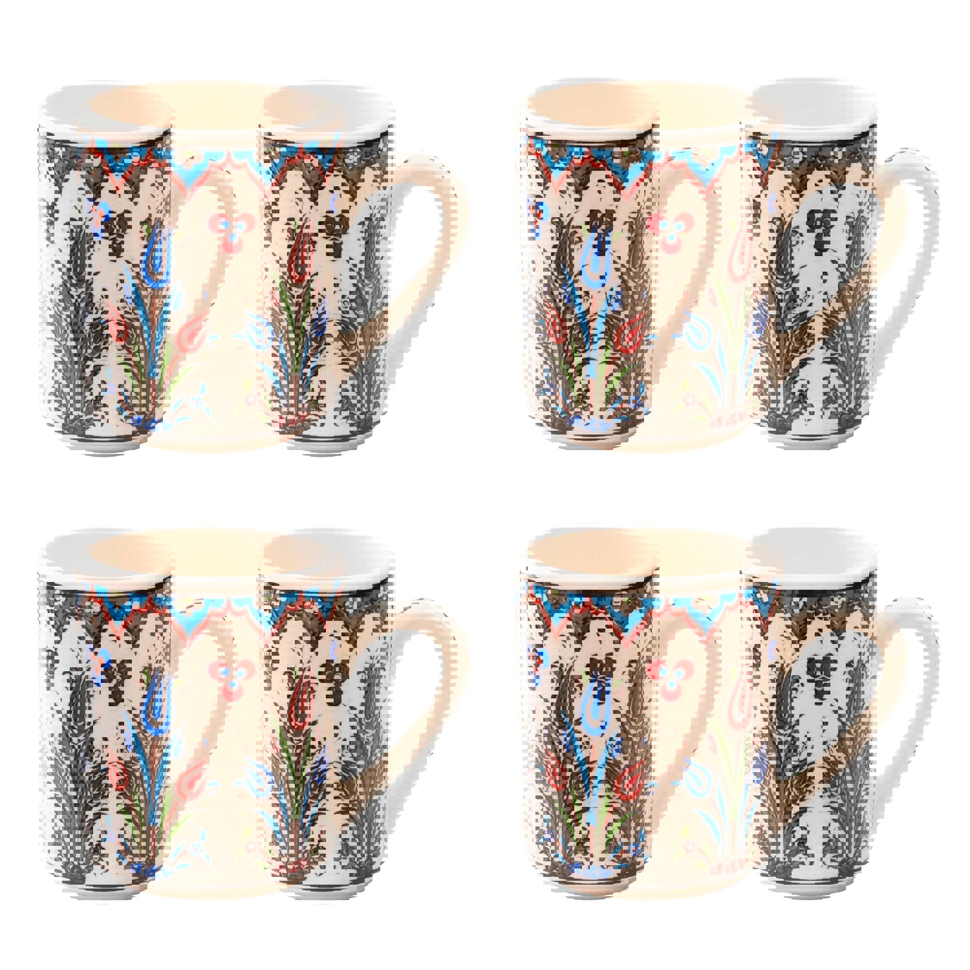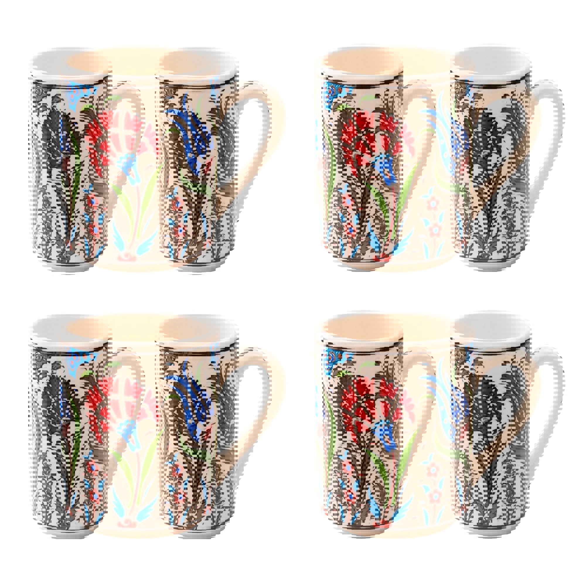 Boxed Gift Set of 4 Handmade Mugs - Turkish Flowers, Hand Painted