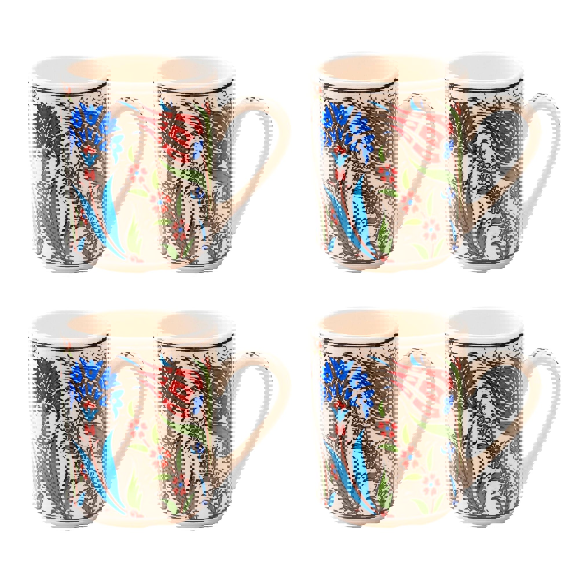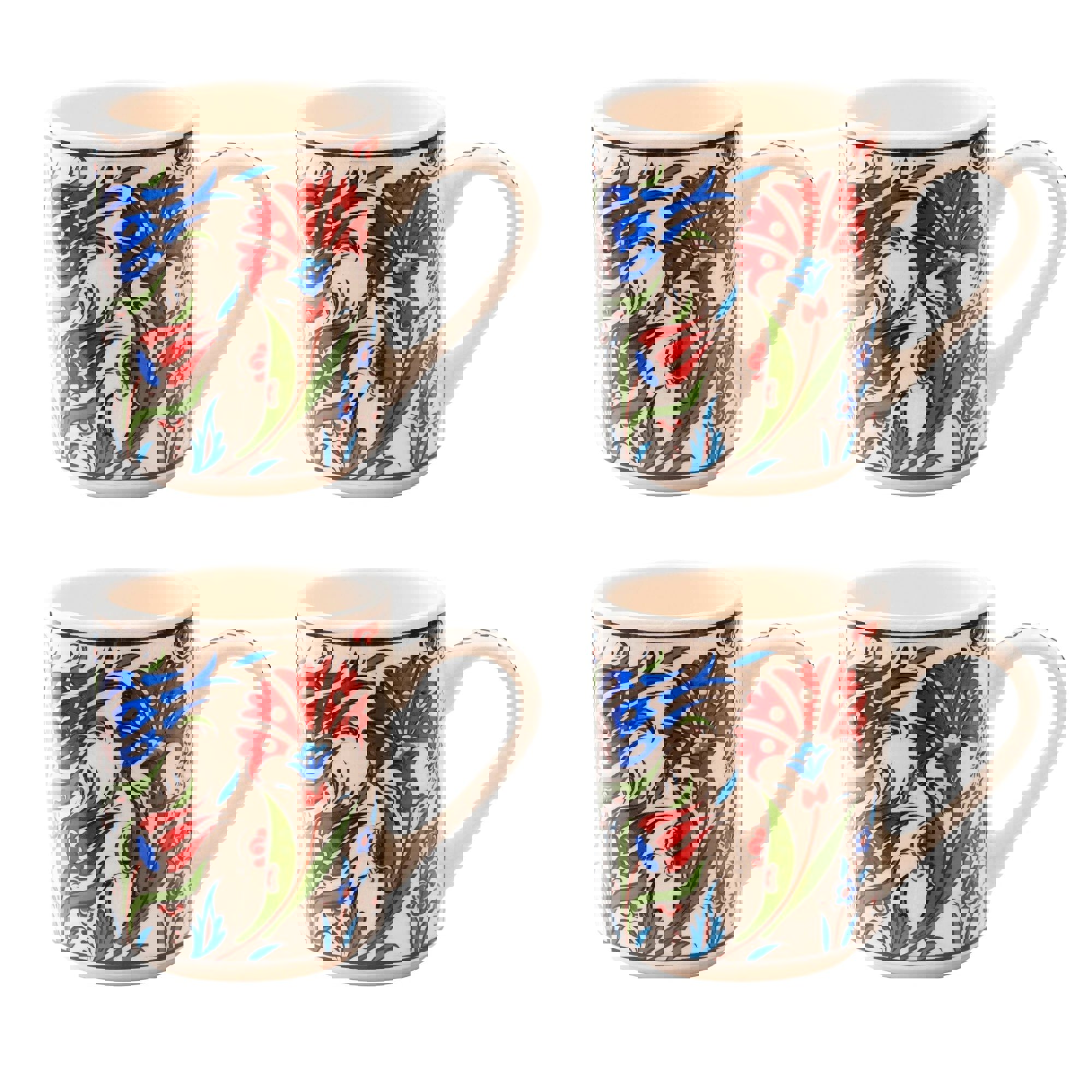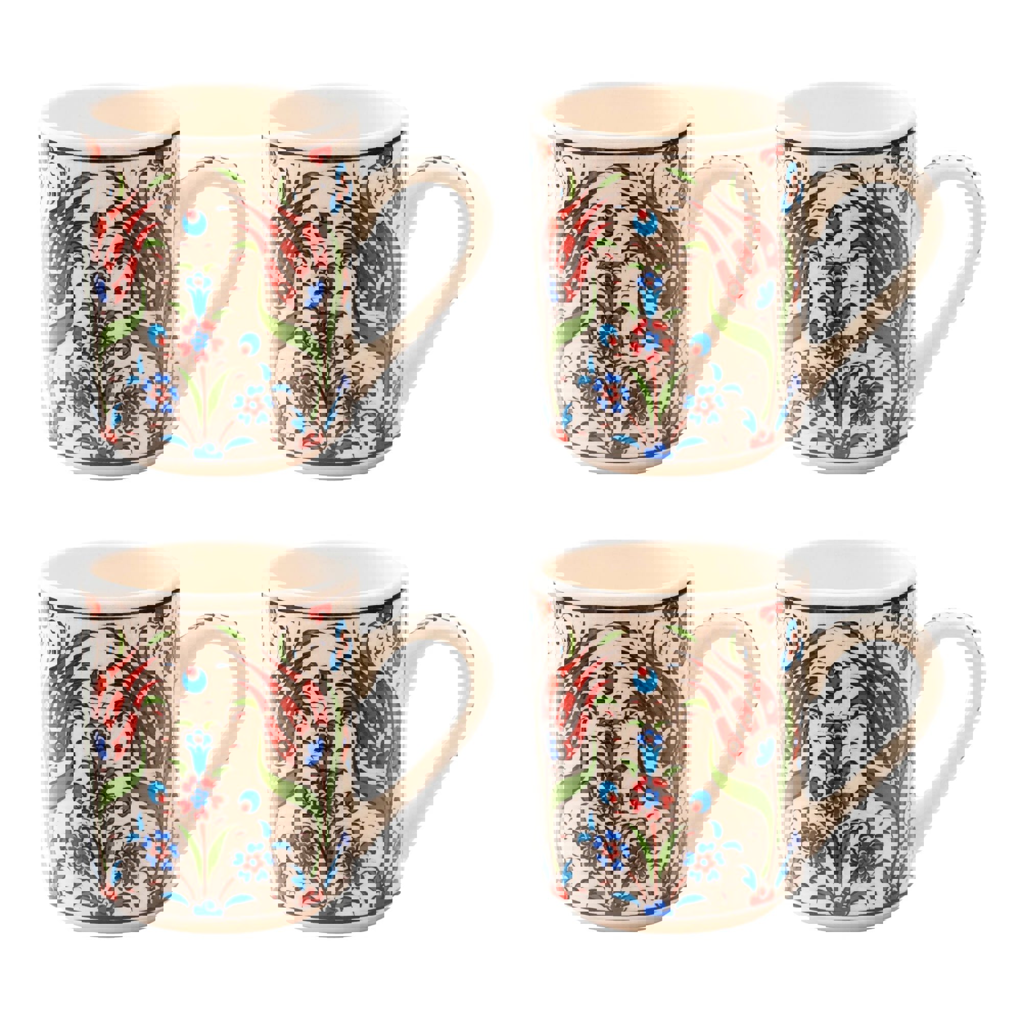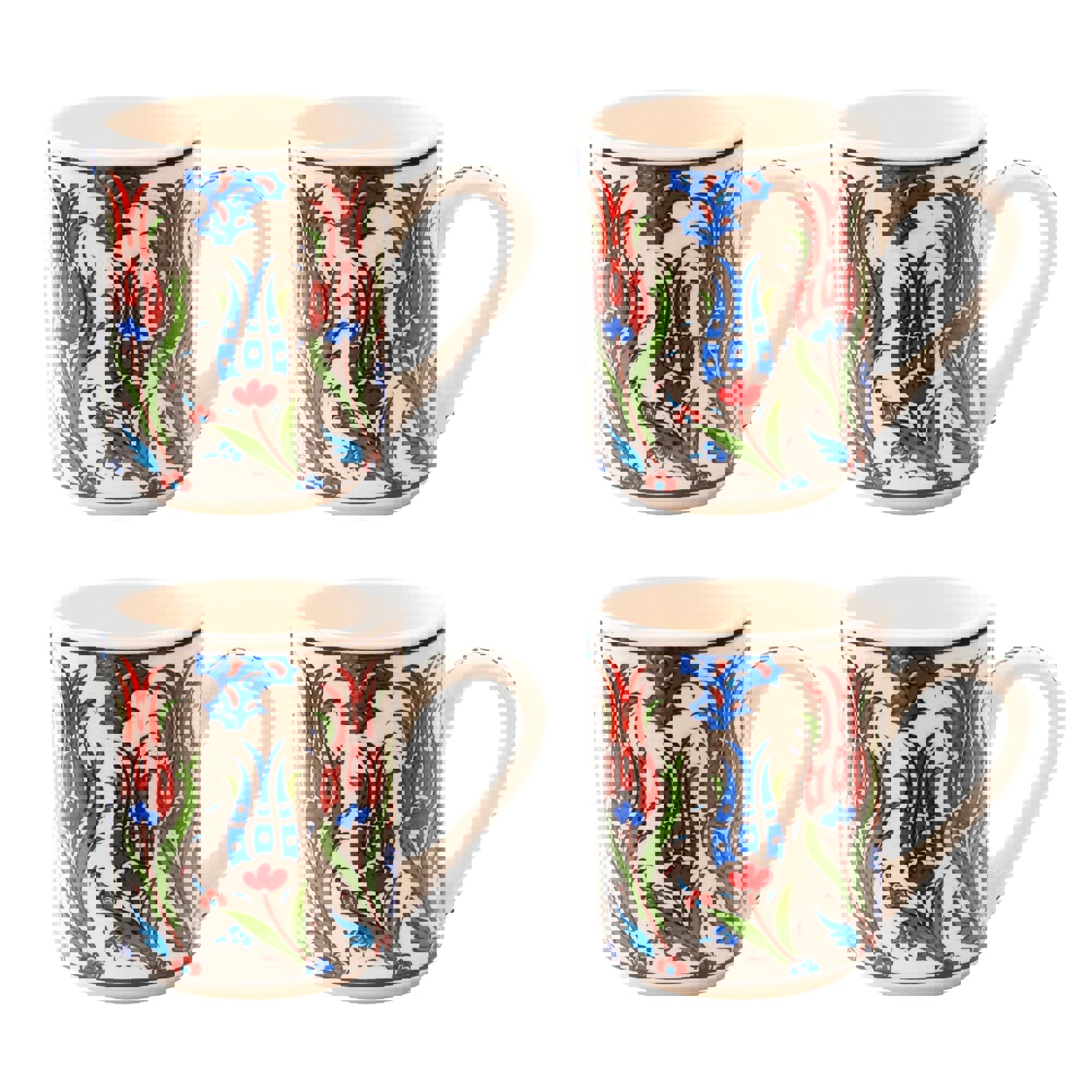 Boxed Gift Set of 4 Handmade Mugs - Turkish Flowers, Hand Painted