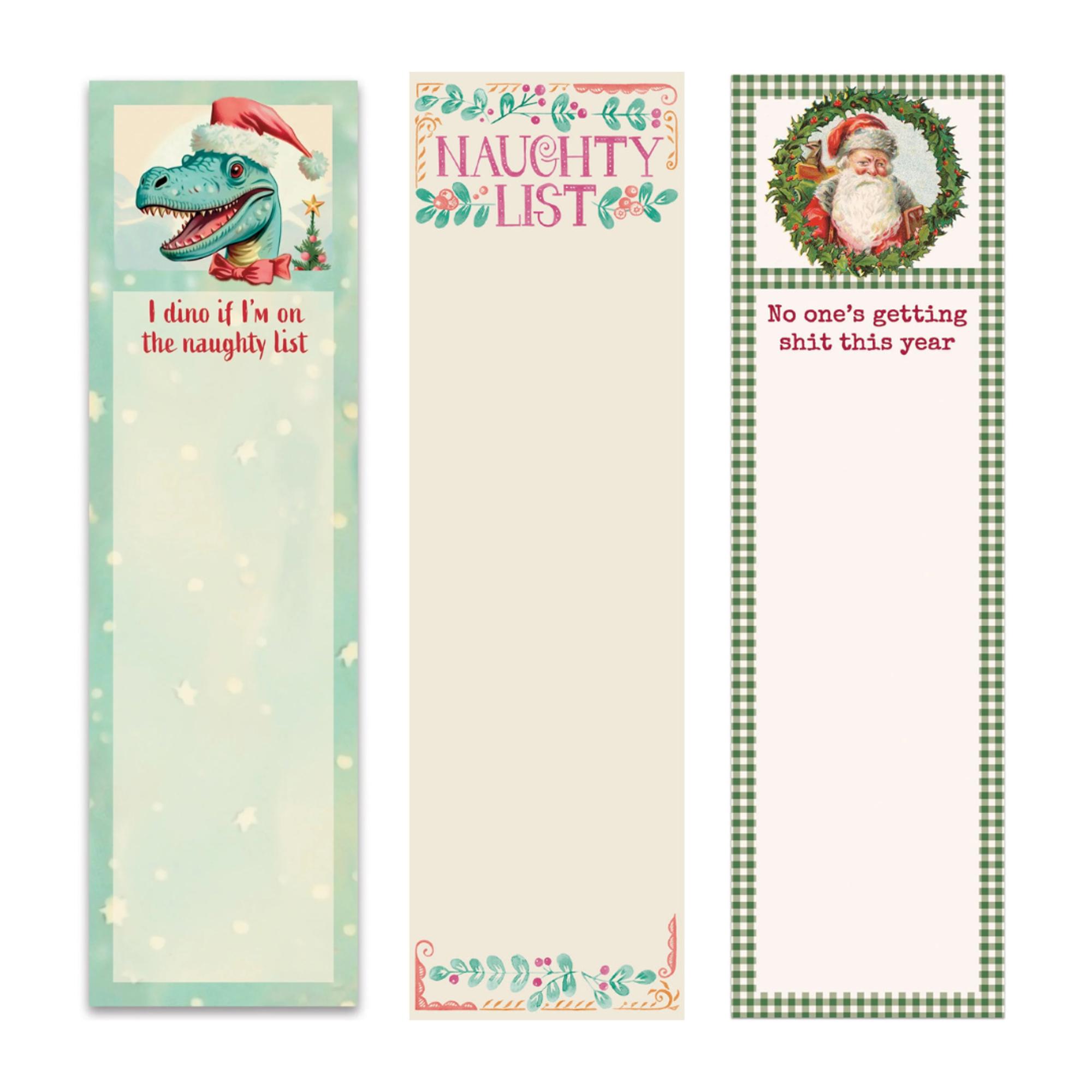 Stay organized with a dash of dino cheer! The Naughty List List Pad features a playful dinosaur-inspired holiday design in a soft pastel color palette. The notepad showcases the fun sentiment “I Dino If I’m On The Naughty List” above a decorative space for jotting down lists, reminders, or festive plans.