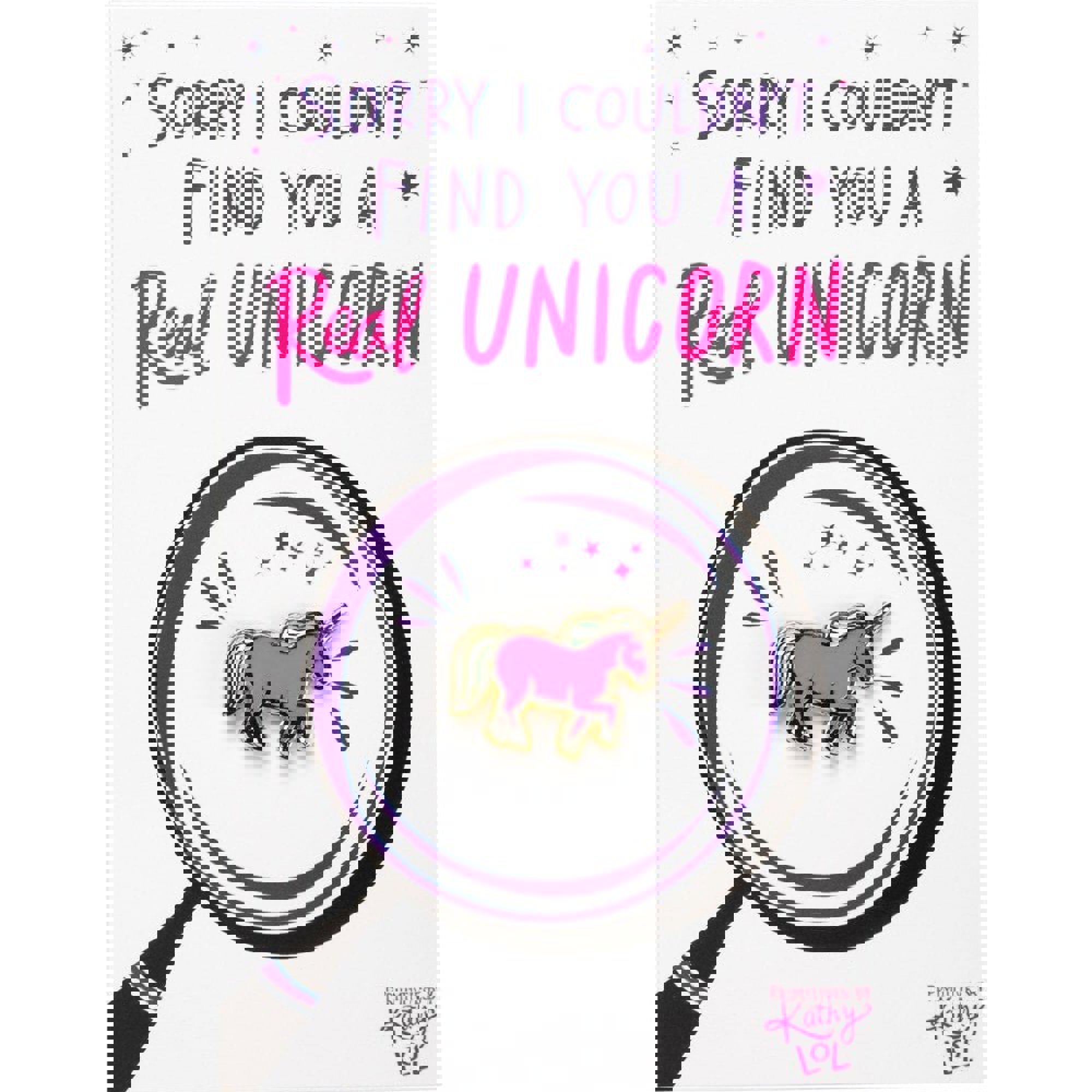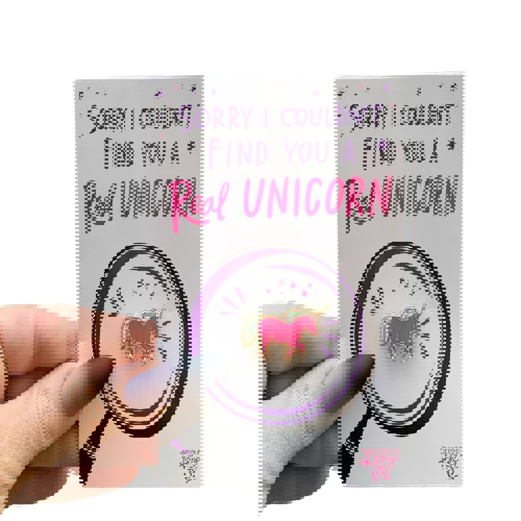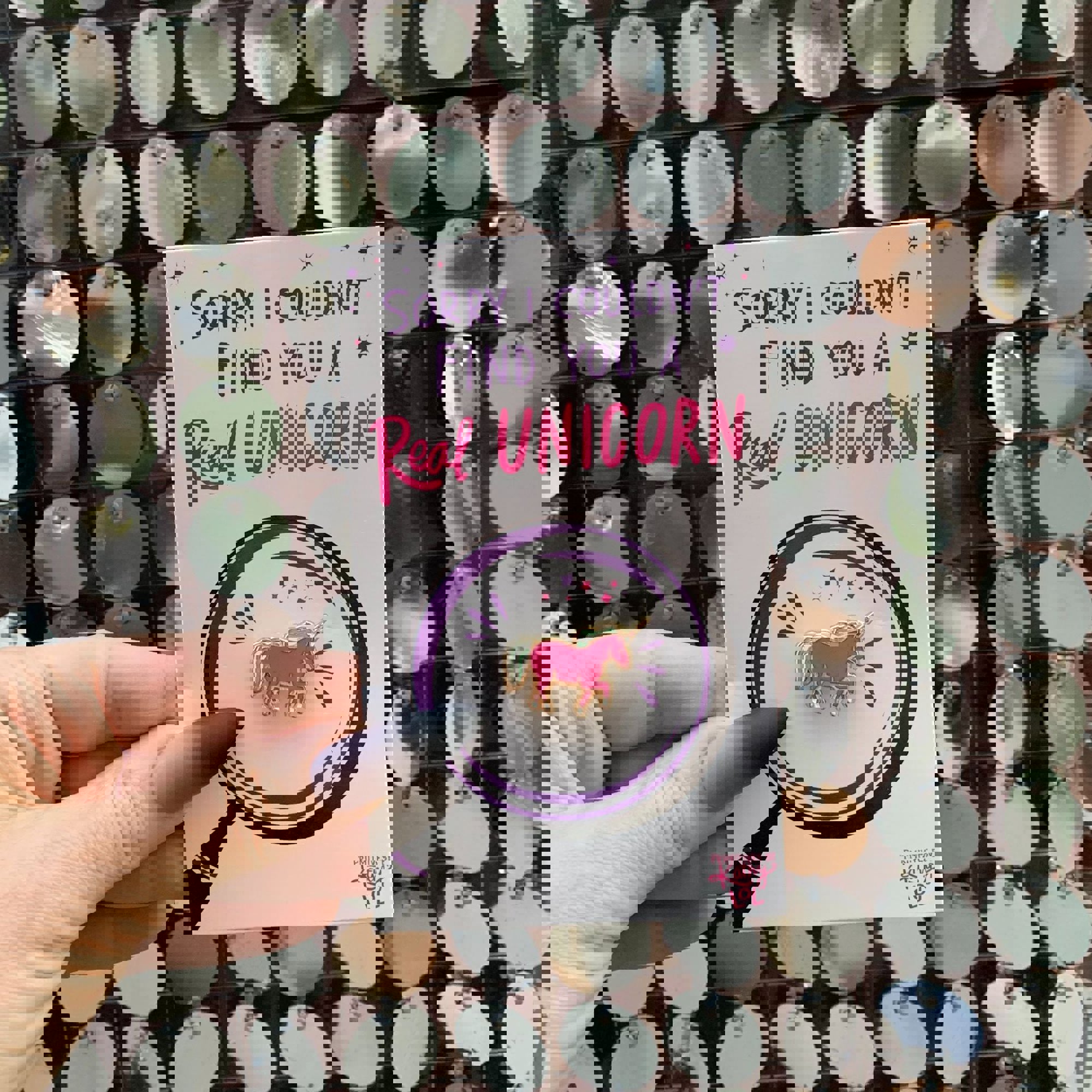 Couldn't Find You A Real Unicorn Enamel Pin on Gift Card