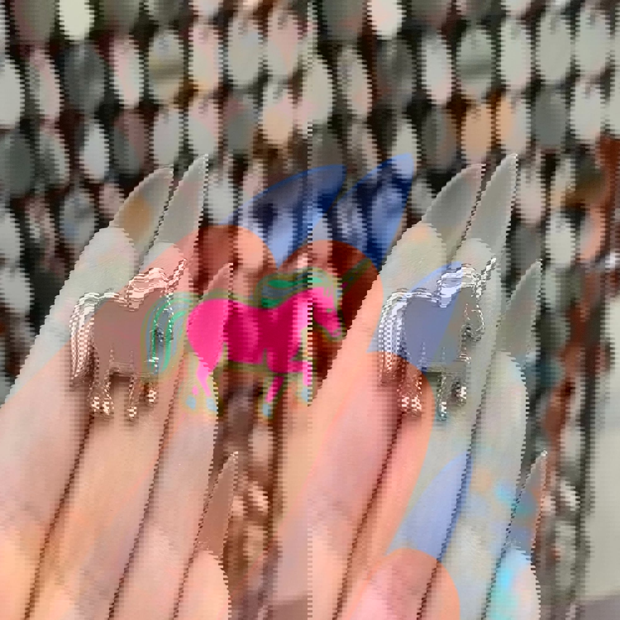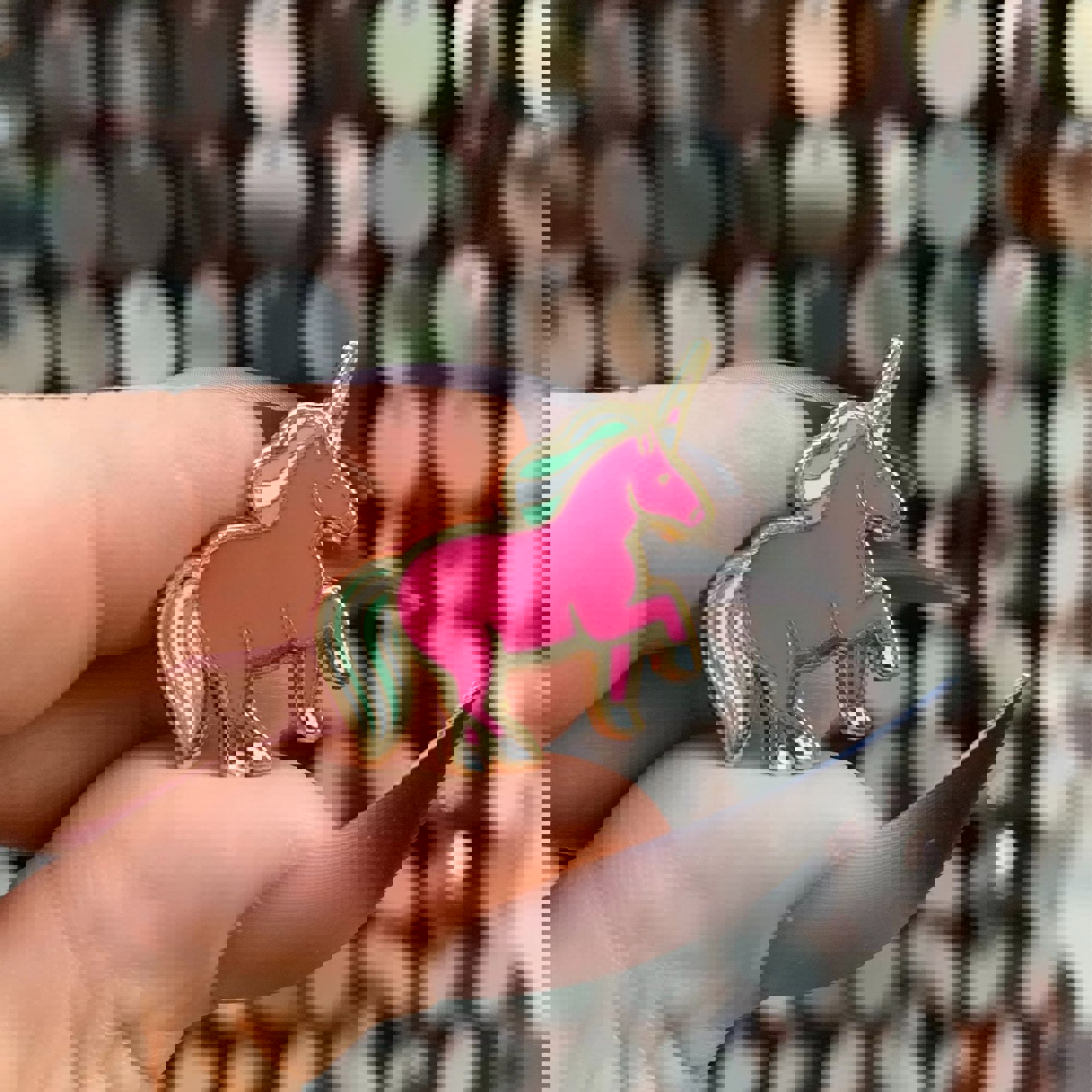 A high-quality hard enamel unicorn pin. Comes packaged on a double-sided, thoughtfully-coordinated "Sorry I Couldn't Find You A Real Unicorn" card with space for a handwritten note on the back.