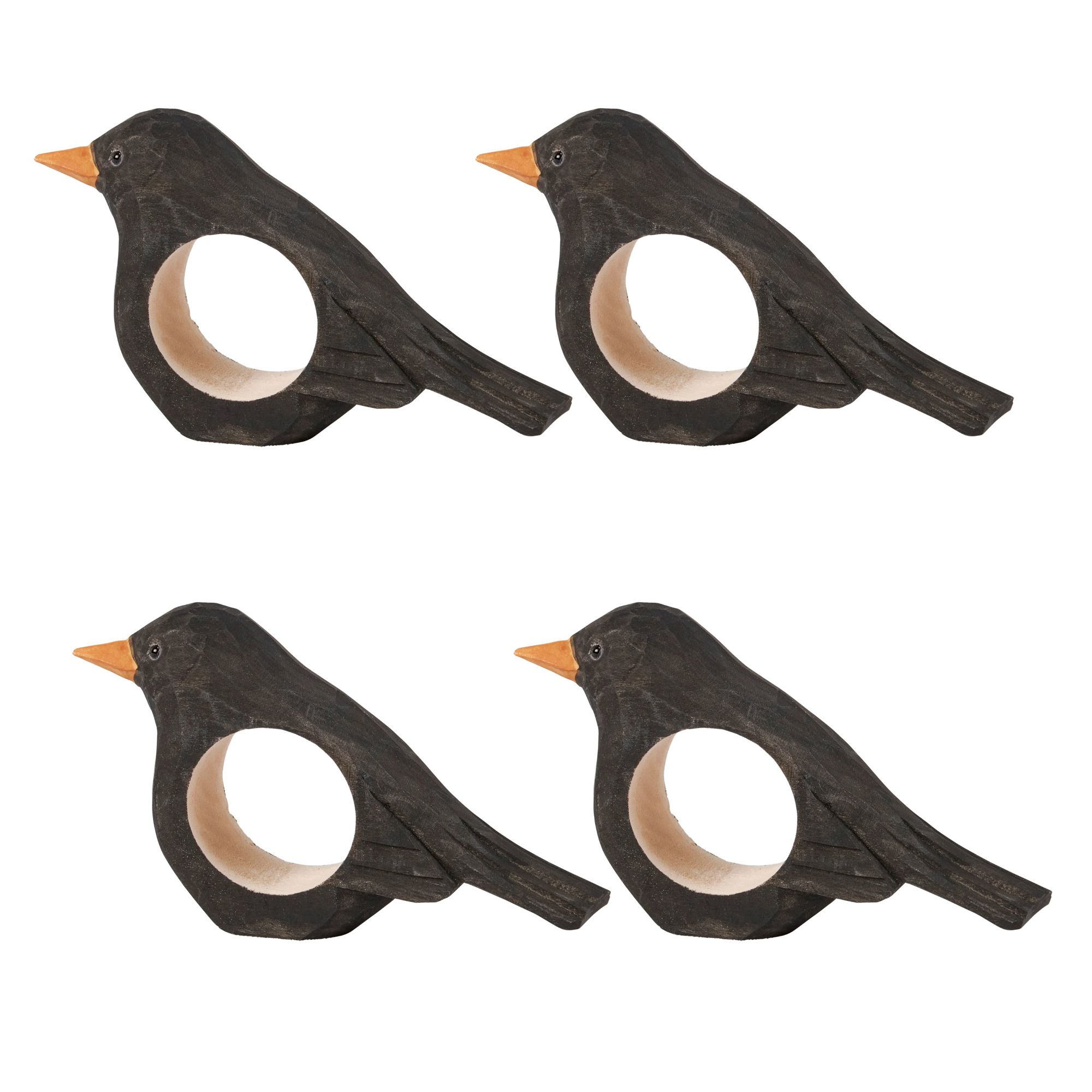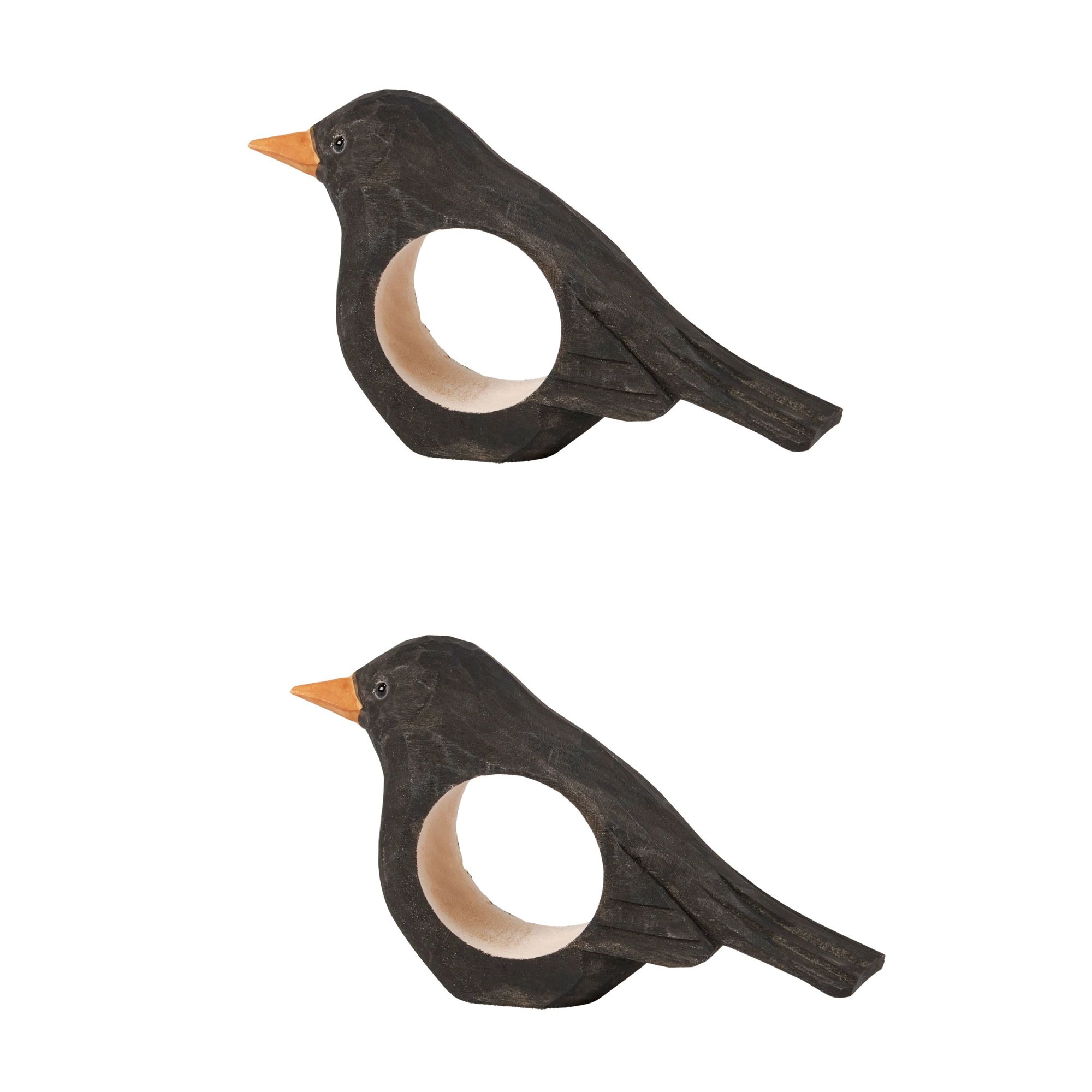 Crow Napkin Ring | Wooden Sculpted Black Bird Serviette Ring Table Napkin Holder | 4" x 2.75"
