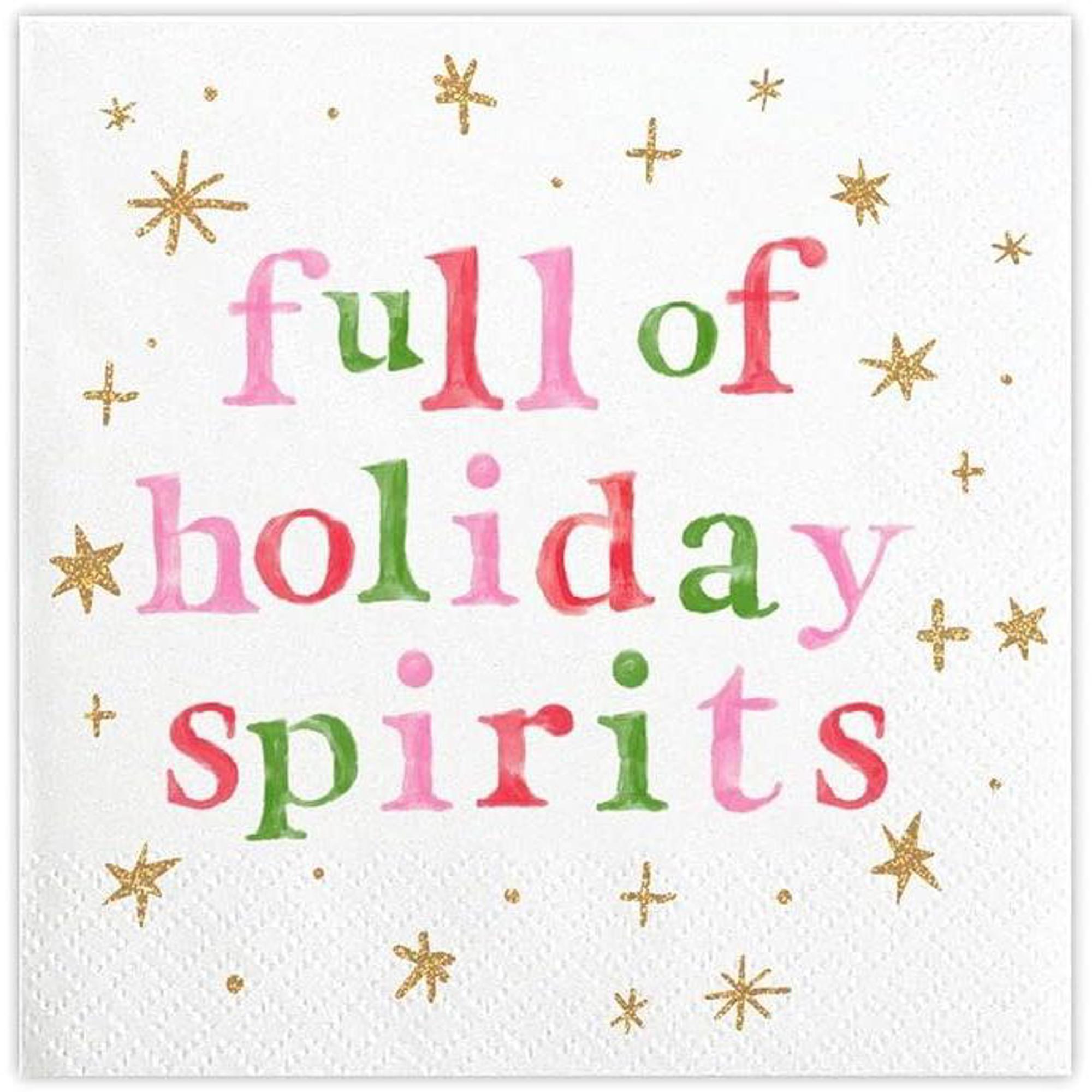 Reads: "Full Of Holiday Spirits " in multicolored lettering on white; accented with gold foil stars