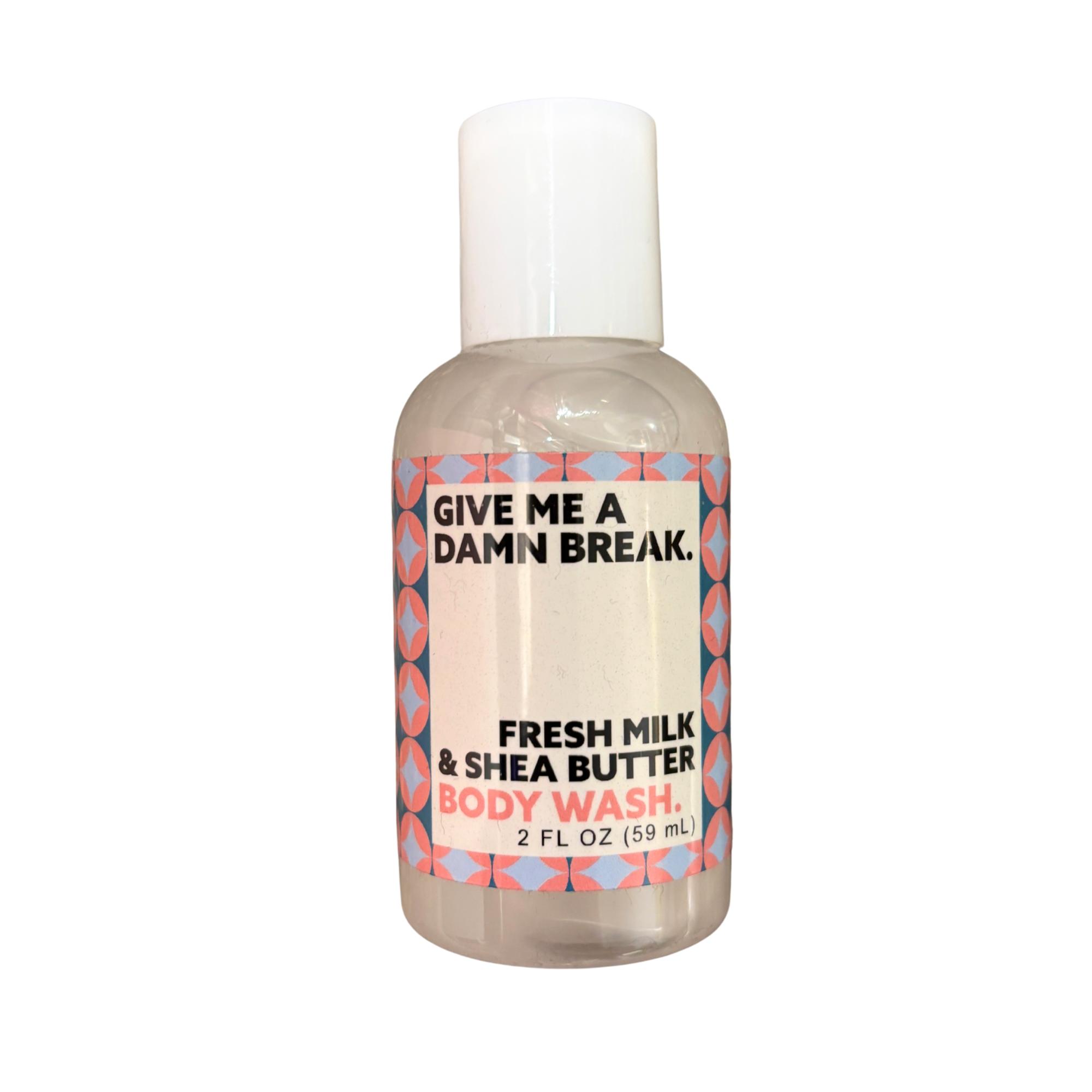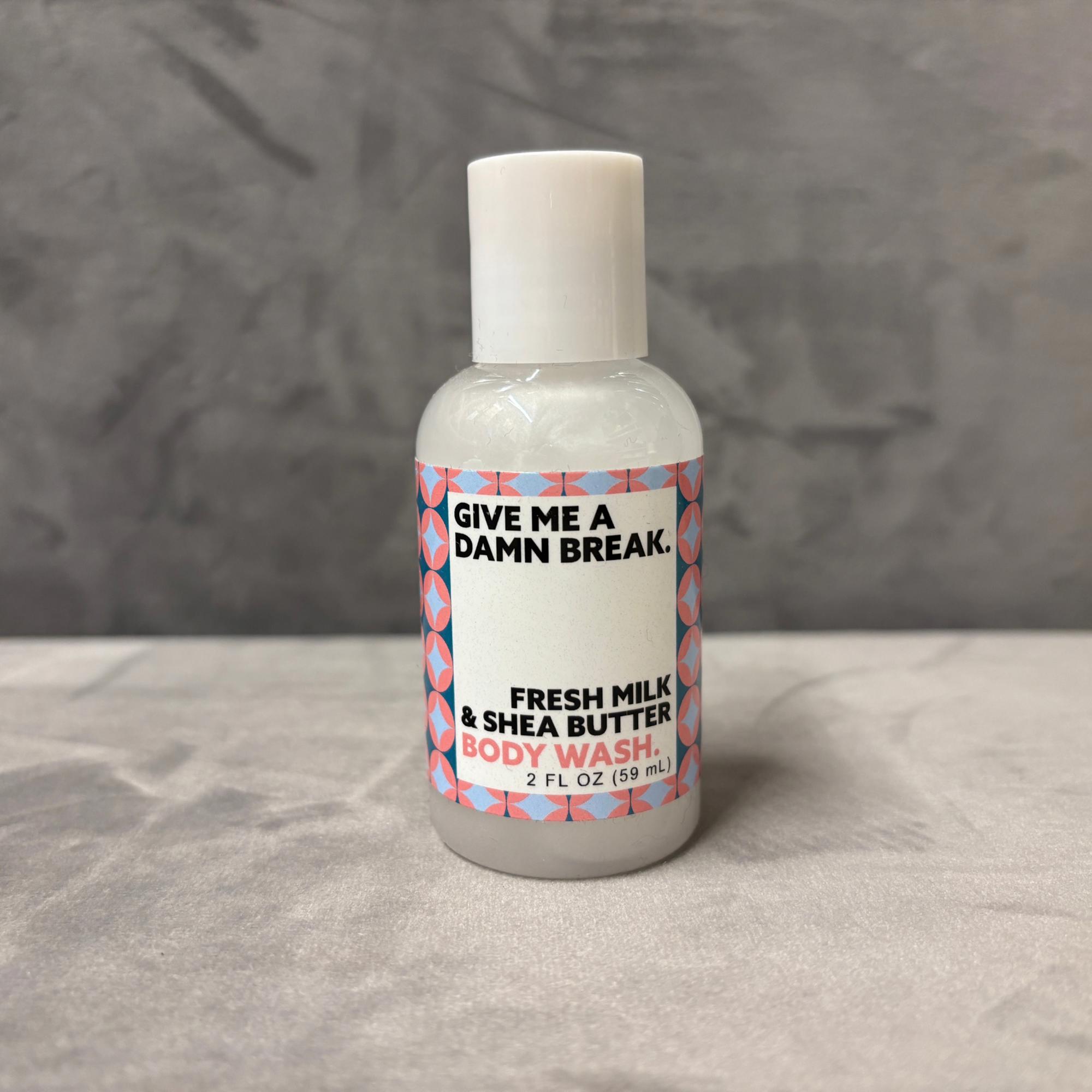 Give Me A Damn Break Travel Size Body Care in Fresh Milk & Shea Butter | Stocking Stuffer 2 Oz Size