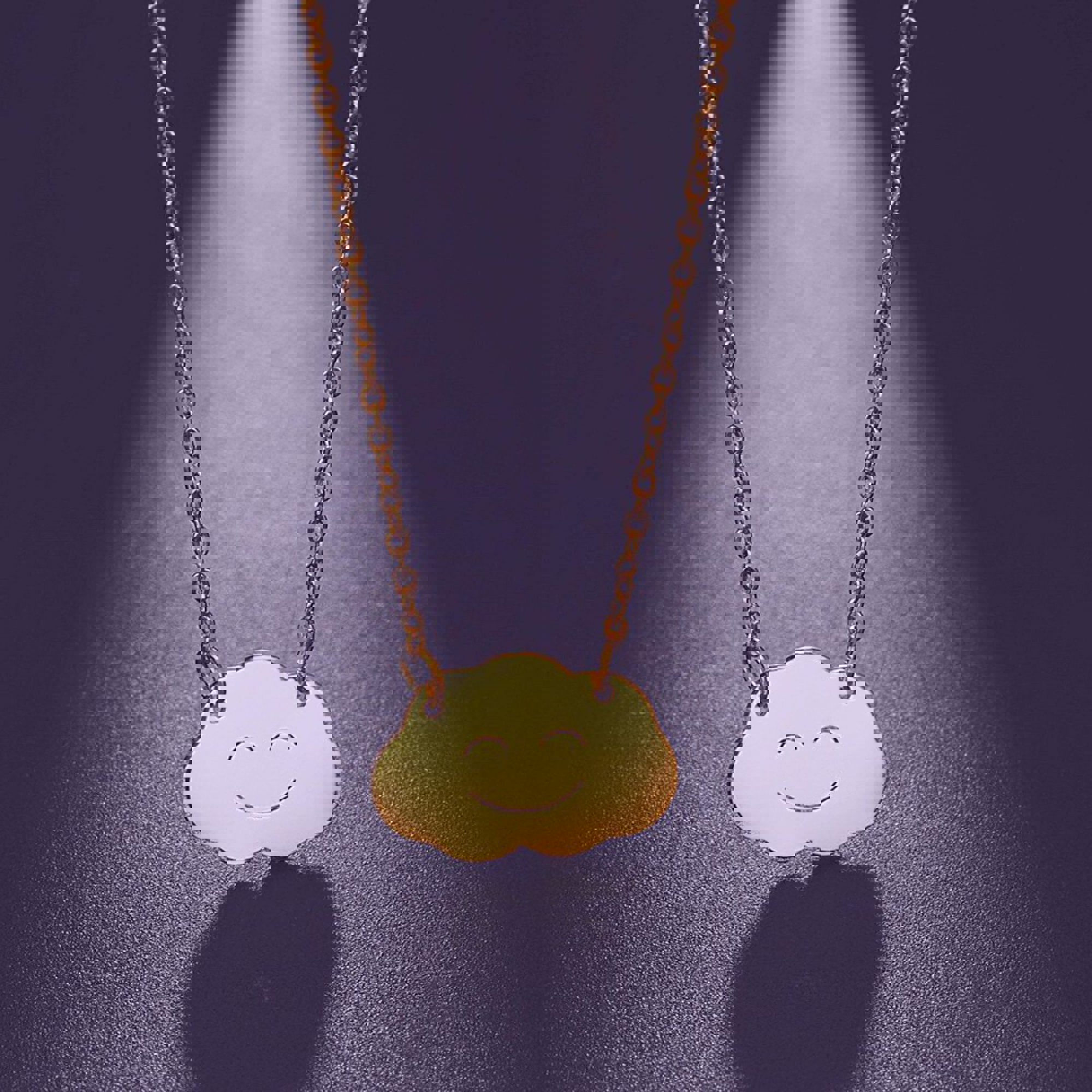 Cloud pendant is attached to the chain in two places so it always lays flat.