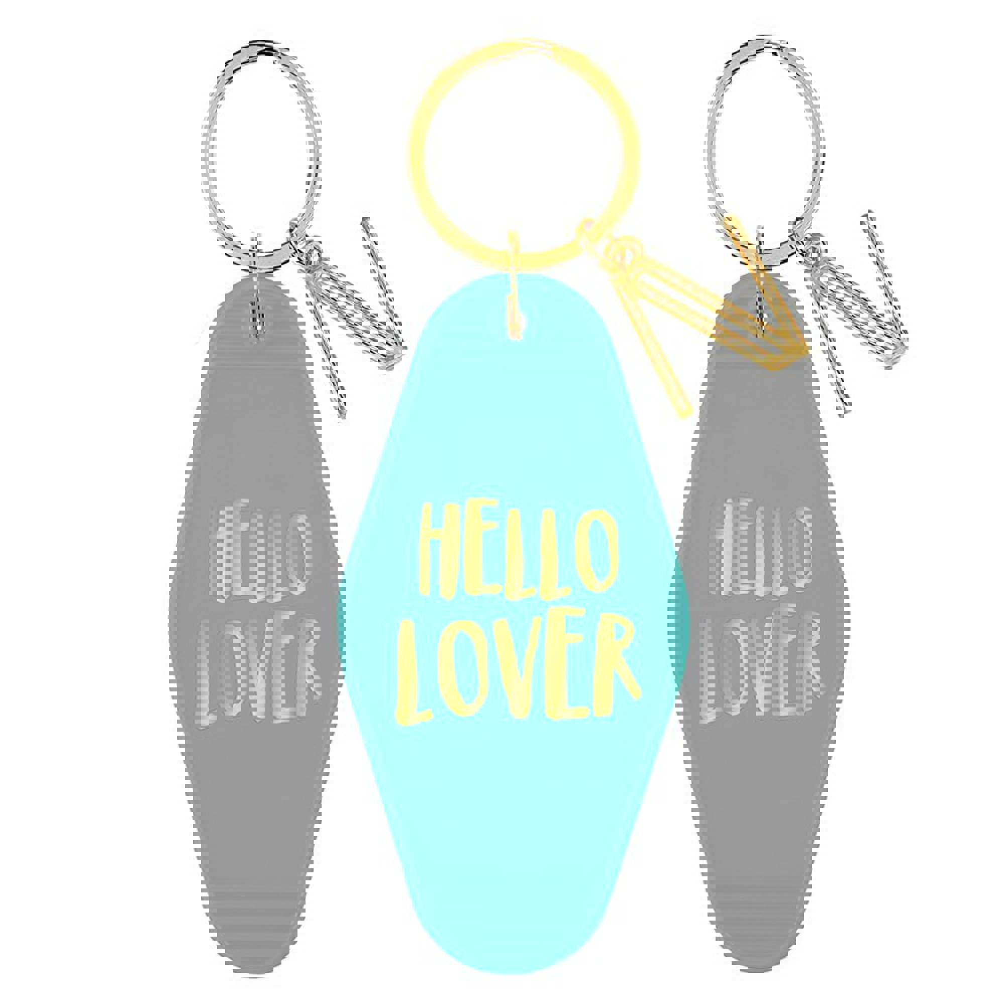 Hello Lover Motel Key Tag in Teal | Acrylic with Gold Accents