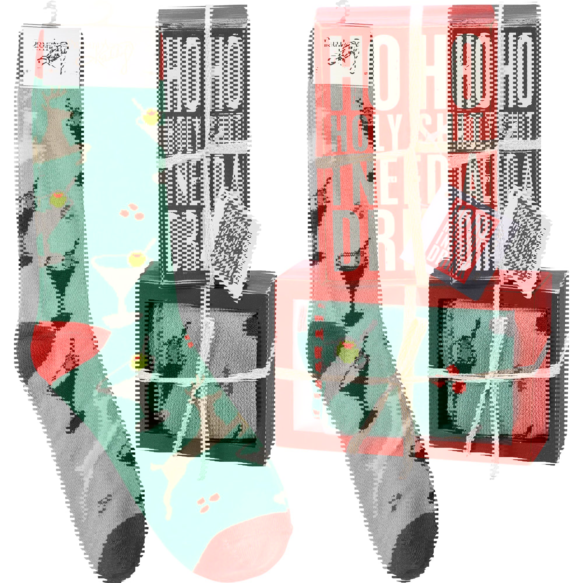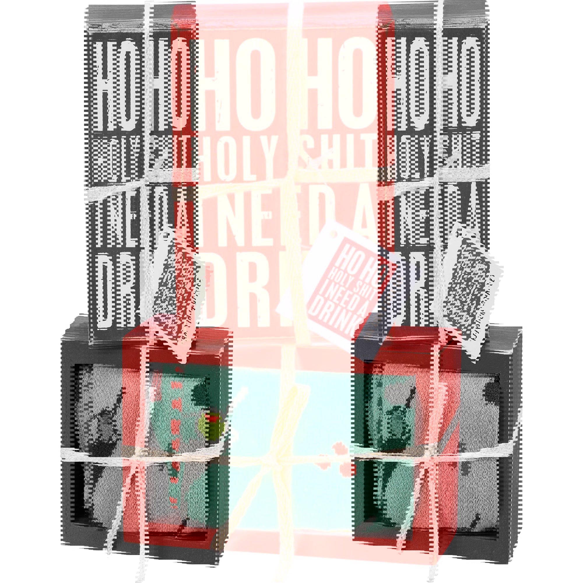 Ho Ho Holy Shit I Need A Drink Box Sign And Sock Giftable Set | Holiday Gift Set