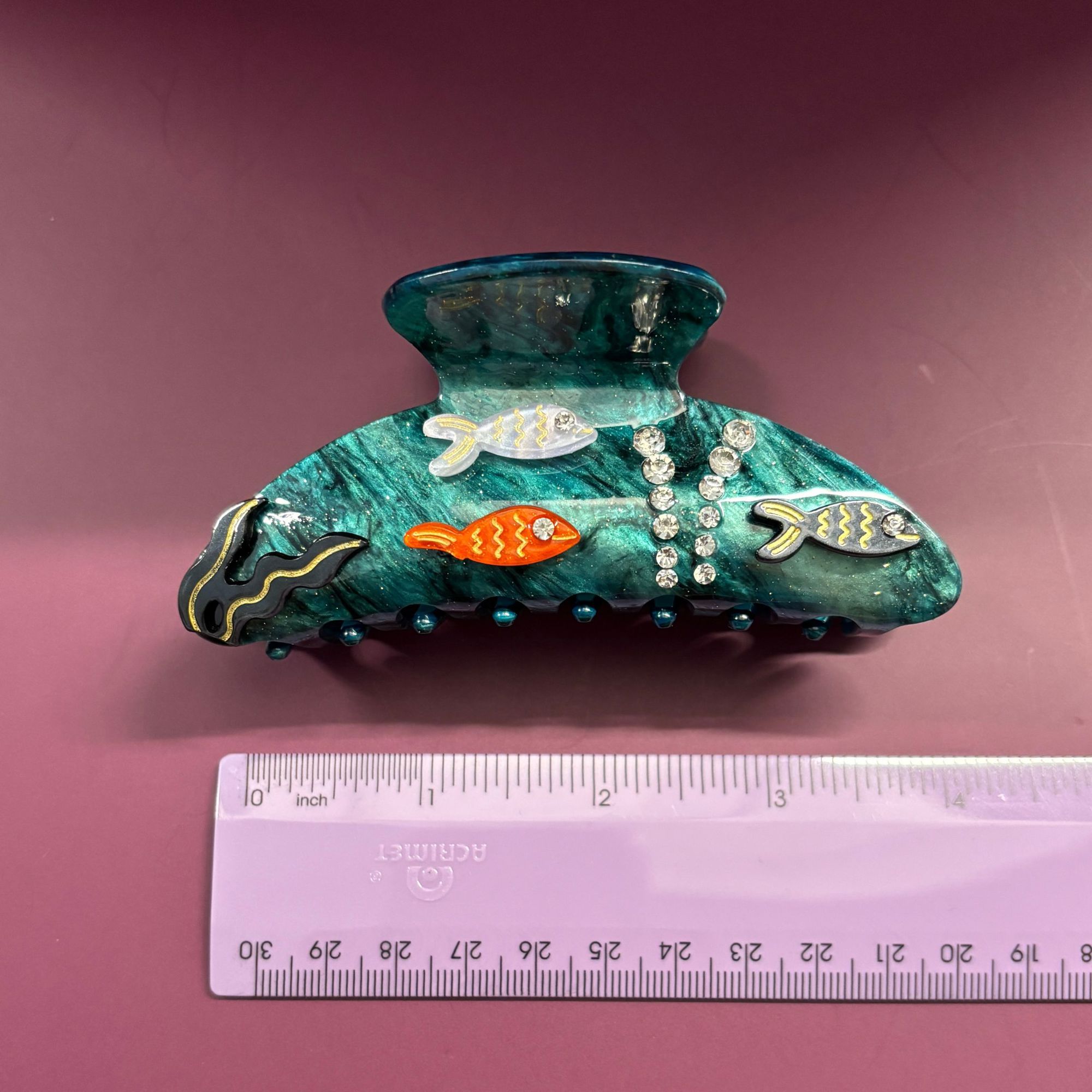 The Disco Goldfish Hair Claw is here to make waves! With sparkling embellishments on both sides and a shimmery ocean-inspired base, this claw clip turns your hair into an underwater dance floor. Dive into bold, playful style and keep your ‘do fabulously afloat for splashy flair.