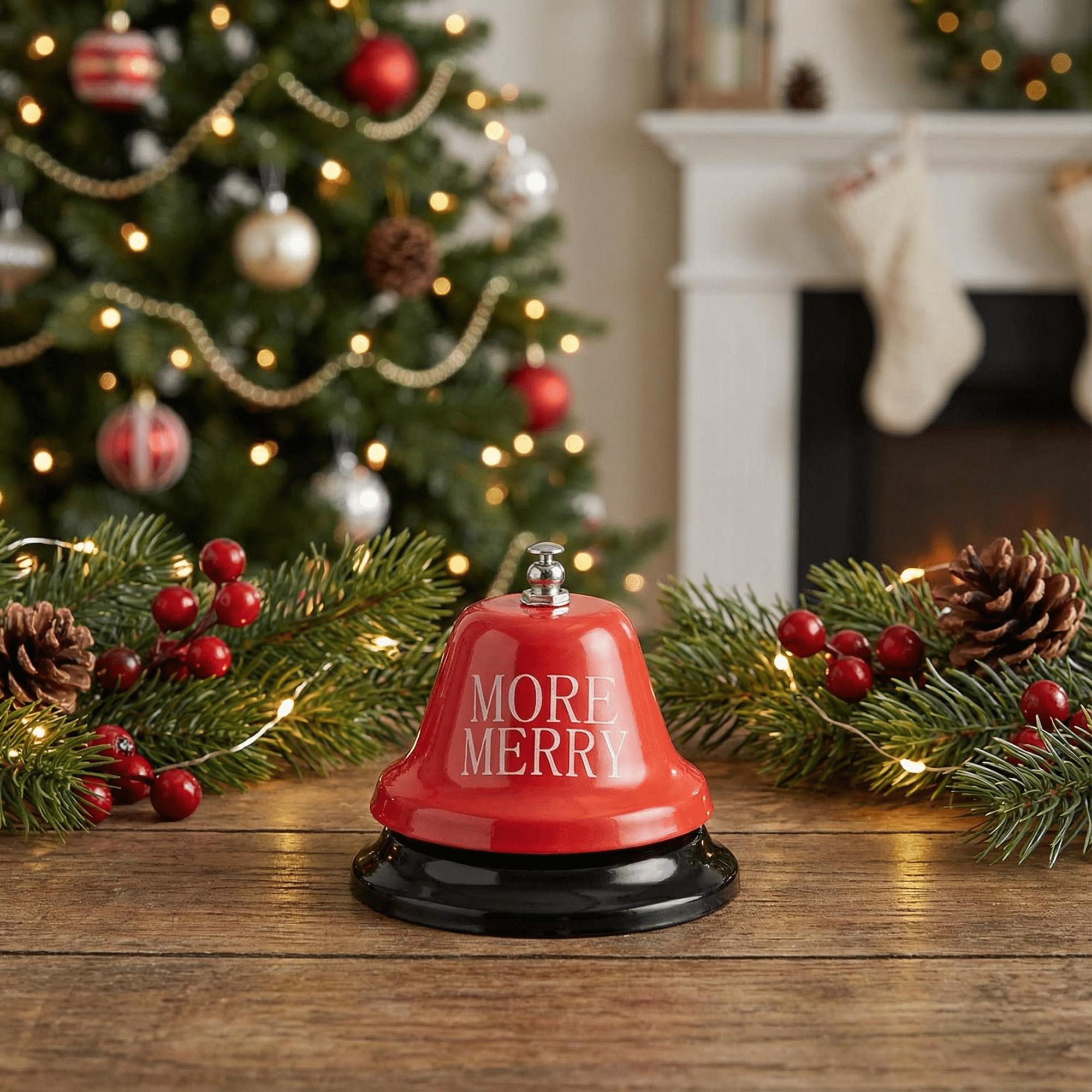 More Merry Holiday Bar Bell | Festive Christmas Metal Desk Bell for Parties & Gifting