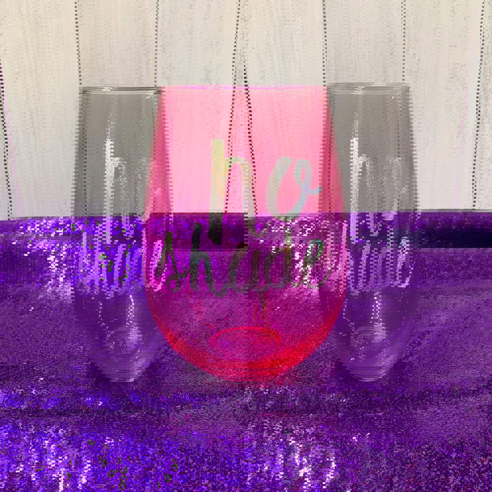 🍷 Embrace your love for wine with the No Shade Jumbo Wine Glass. This oversized glass holds a full bottle and adds some playful fun with its bright pink tint. Drink wine in style in this jumbo stemless wine glass! Perfect for a girls' night in or a fun gift for a wine lover. Cheers to not holding back! 🎉 Material: Glass Size: 4" x 5.7" H Capacity: 30 oz Care Instructions: Hand Wash Only By Slant Collections