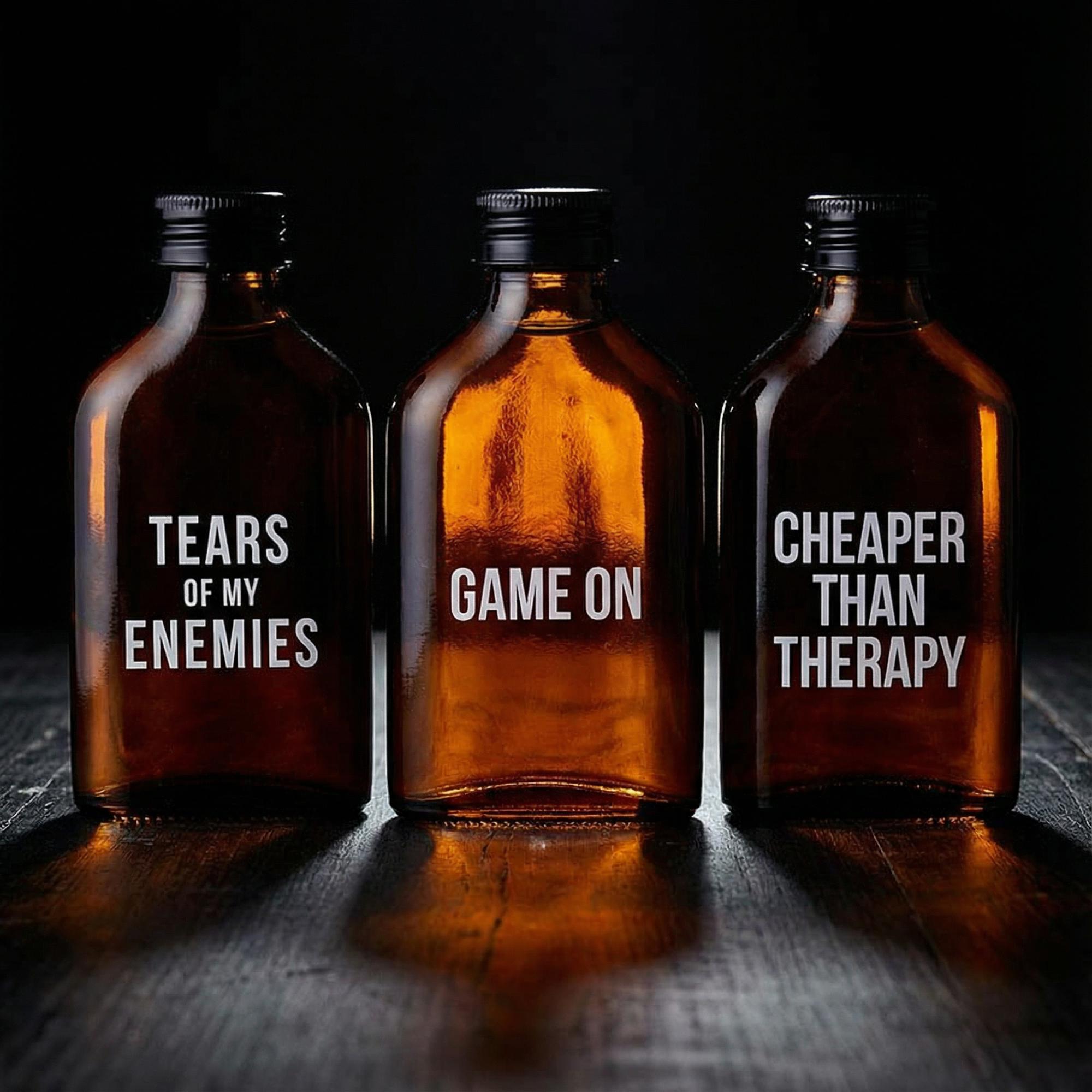 Amber flasks that finally share the same sense of humor with you! Enjoy responsibly.