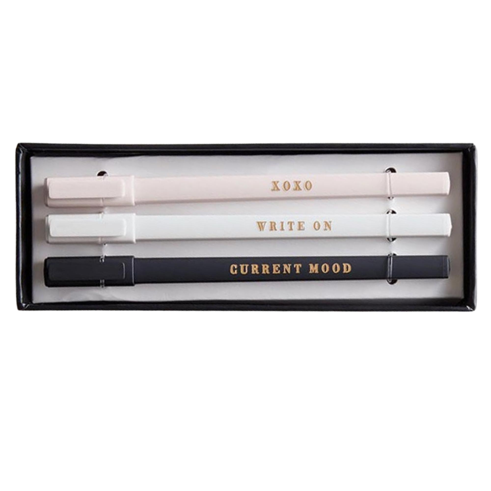 These elegant pen gift sets include three pens in a sleek gift box, ready to impress. A chic choice for a stocking stuffer, boss gift, or office accessory, this minimalist pen set is both feminine and functional. Each pen features a smooth black ink ballpoint tip, is refillable, and designed with a mix of plastic and metal for lasting use. Ideal as a client gift, employee appreciation gift, or a stylish home office pen set.