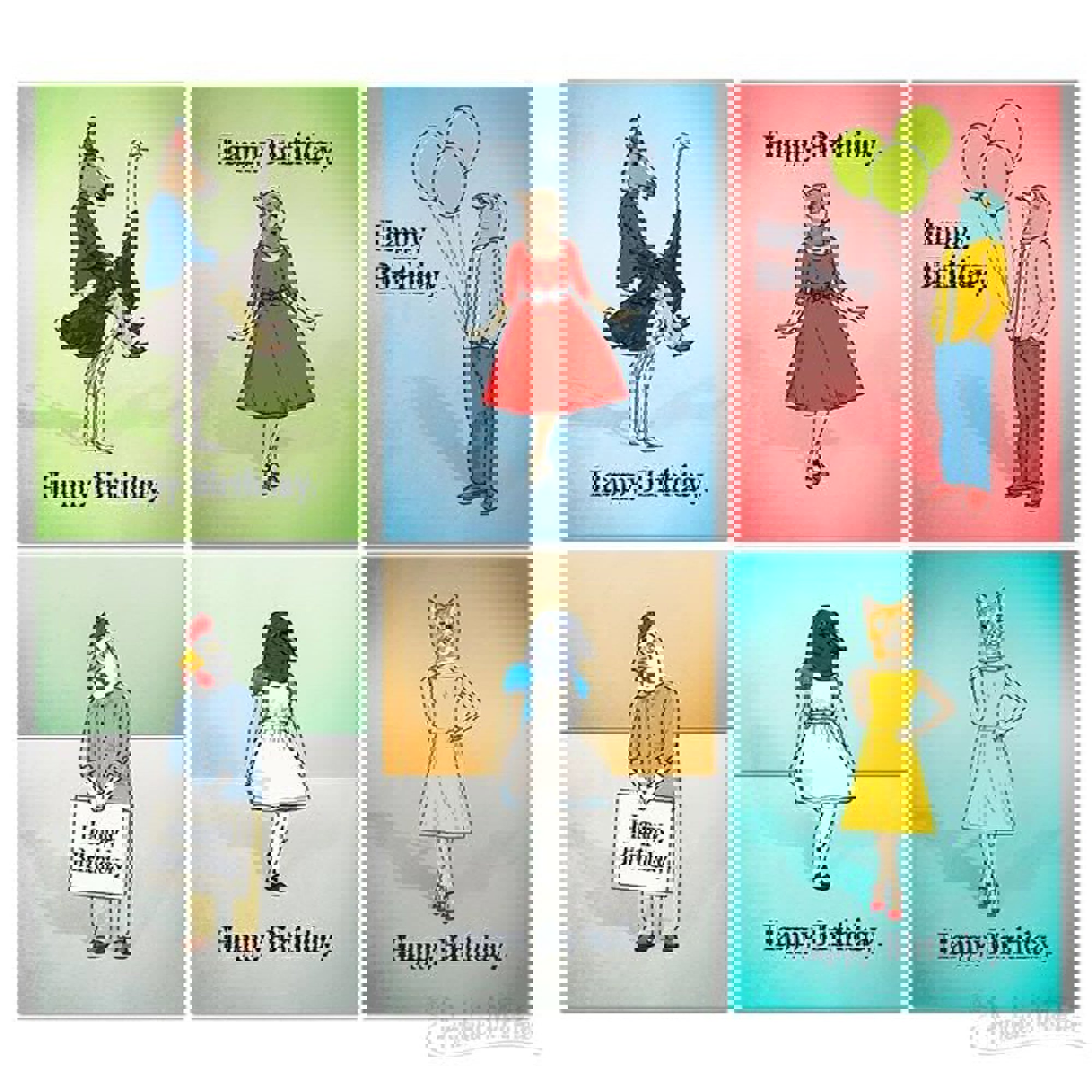 This set of six birthday cards is just the thing to distract friends and family from their advancing age! While these are a little weird, so are your friends and family so it all works out. Each 5" x 7" (12.7 cm x 17.8 cm) card is illustrated with a person in an animal mask mutedly celebrating.