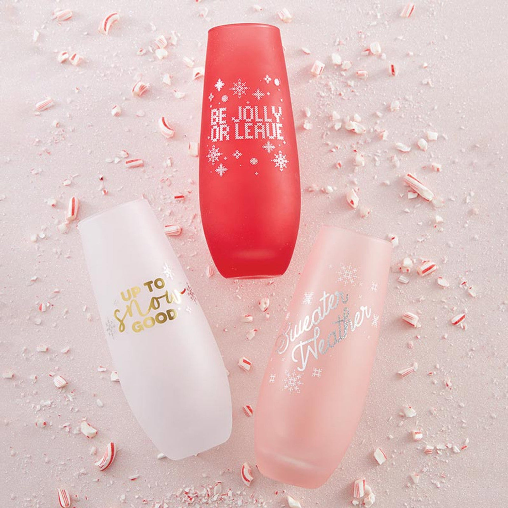 Cheers to the holidays with these champagne flutes! The frosted color spray details are perfect for any holiday gathering!