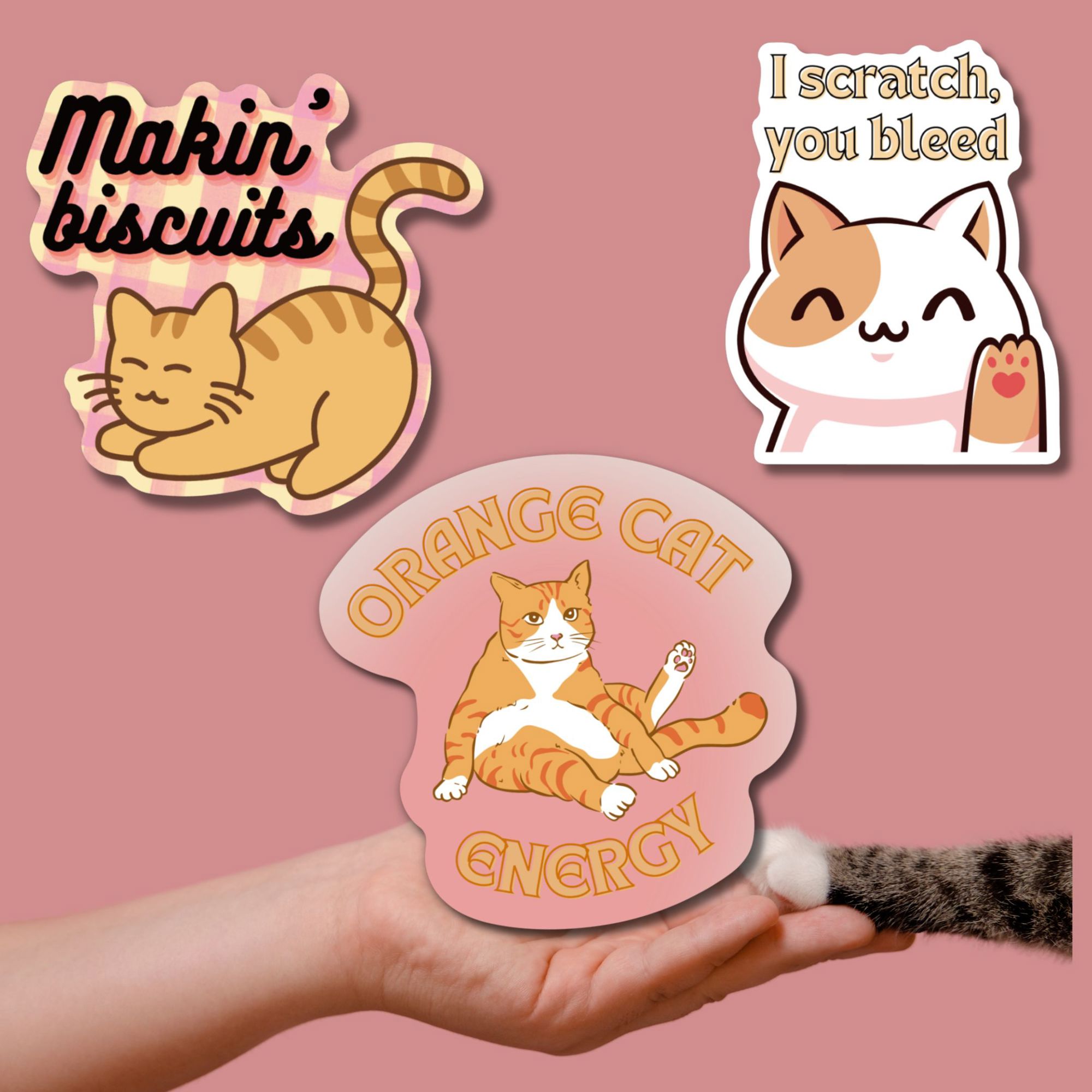 Set 3: Orange Cat Energy, Makin' Biscuits, I Scratch You Bleed