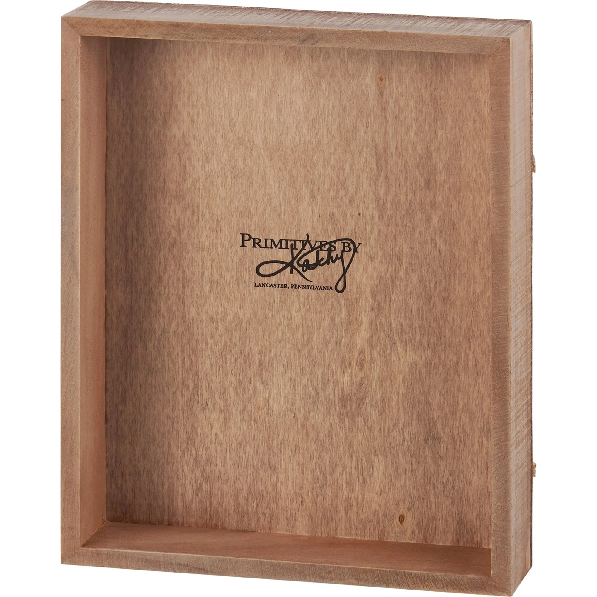 Box sign features coordinating natural wood on sides and back and jute rope accents in the design.