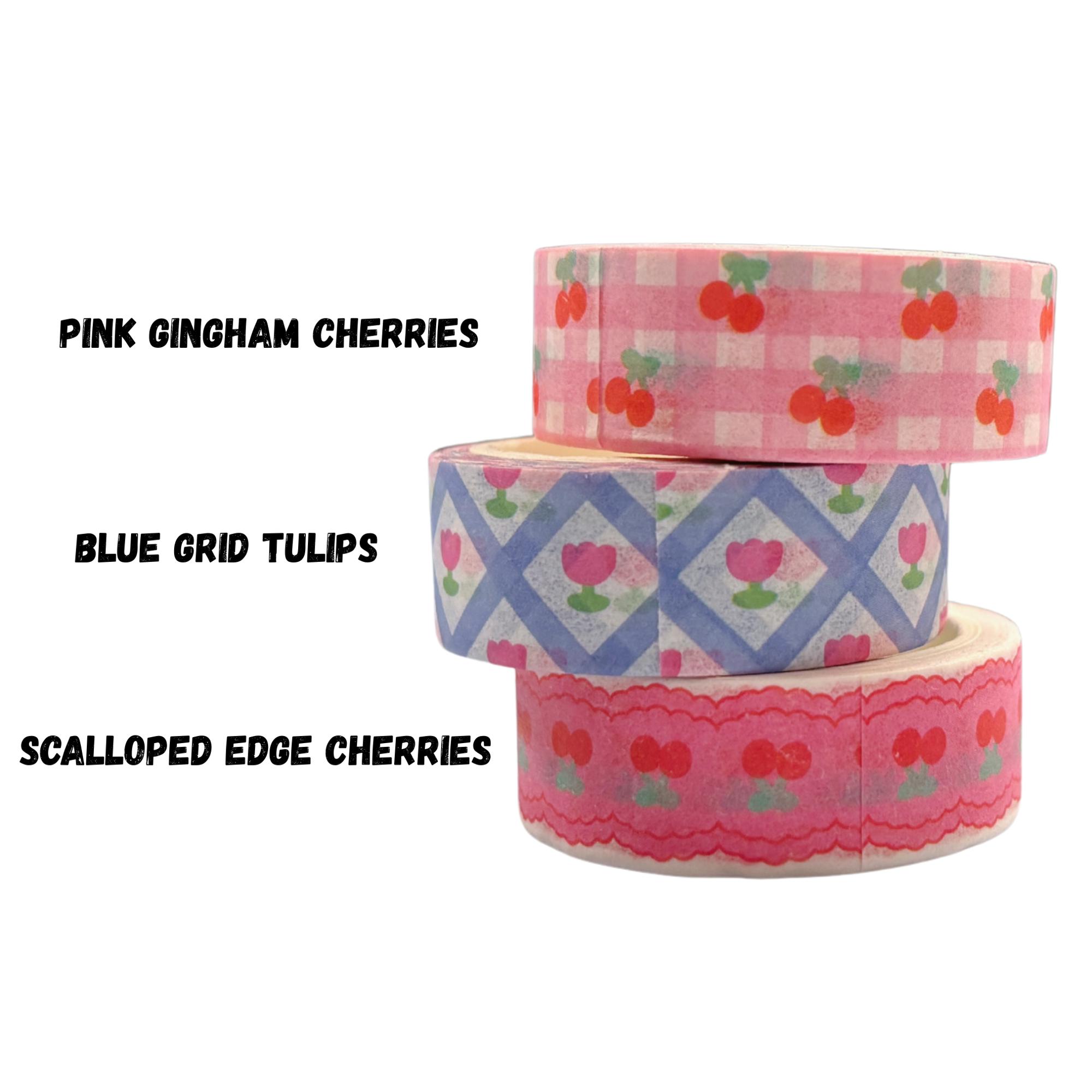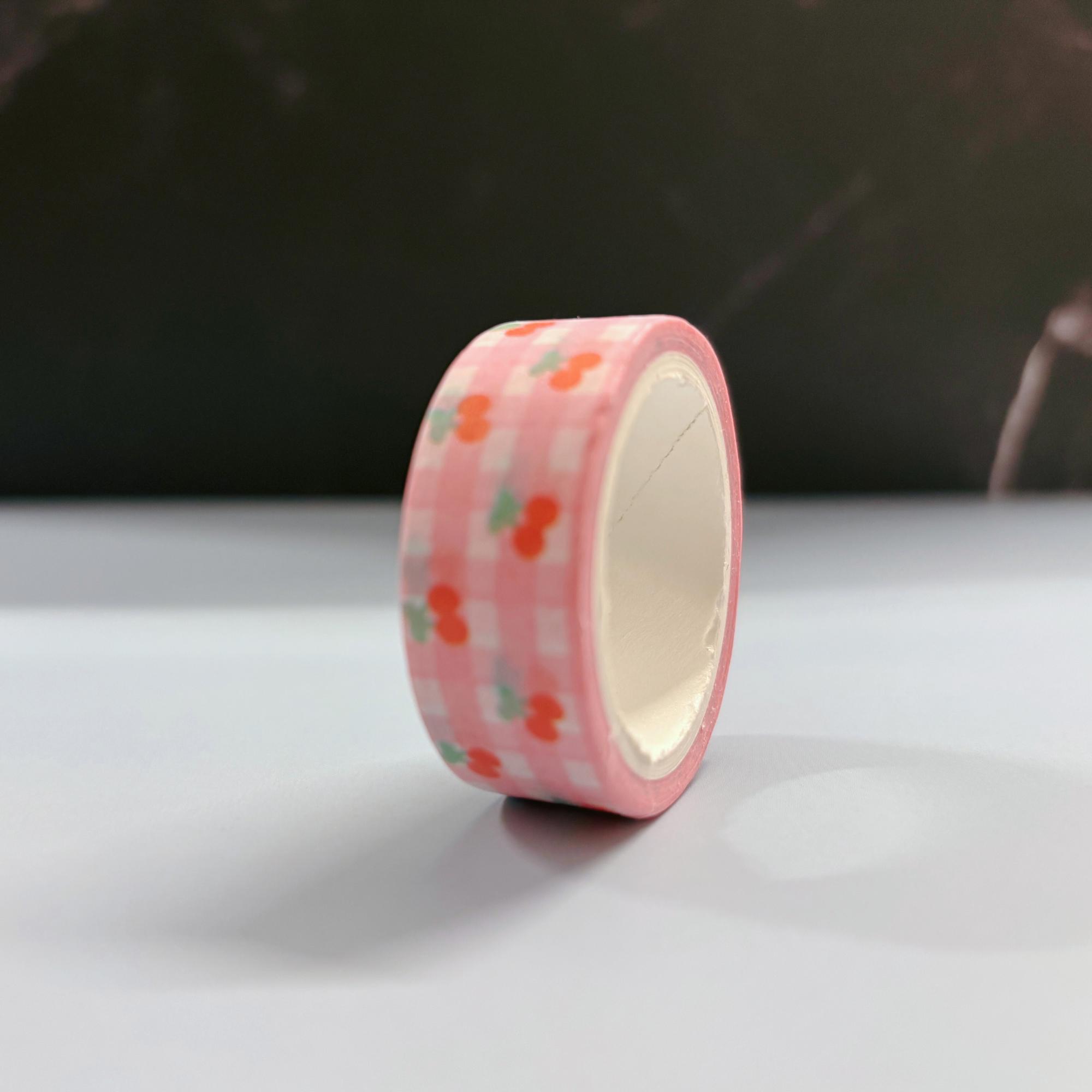 Pink Gingham Cherries Washi Tape – A sweet blend of pink gingham pattern and cherry motifs that brings nostalgia and charm to your planner, scrapbook, or gift wrap.