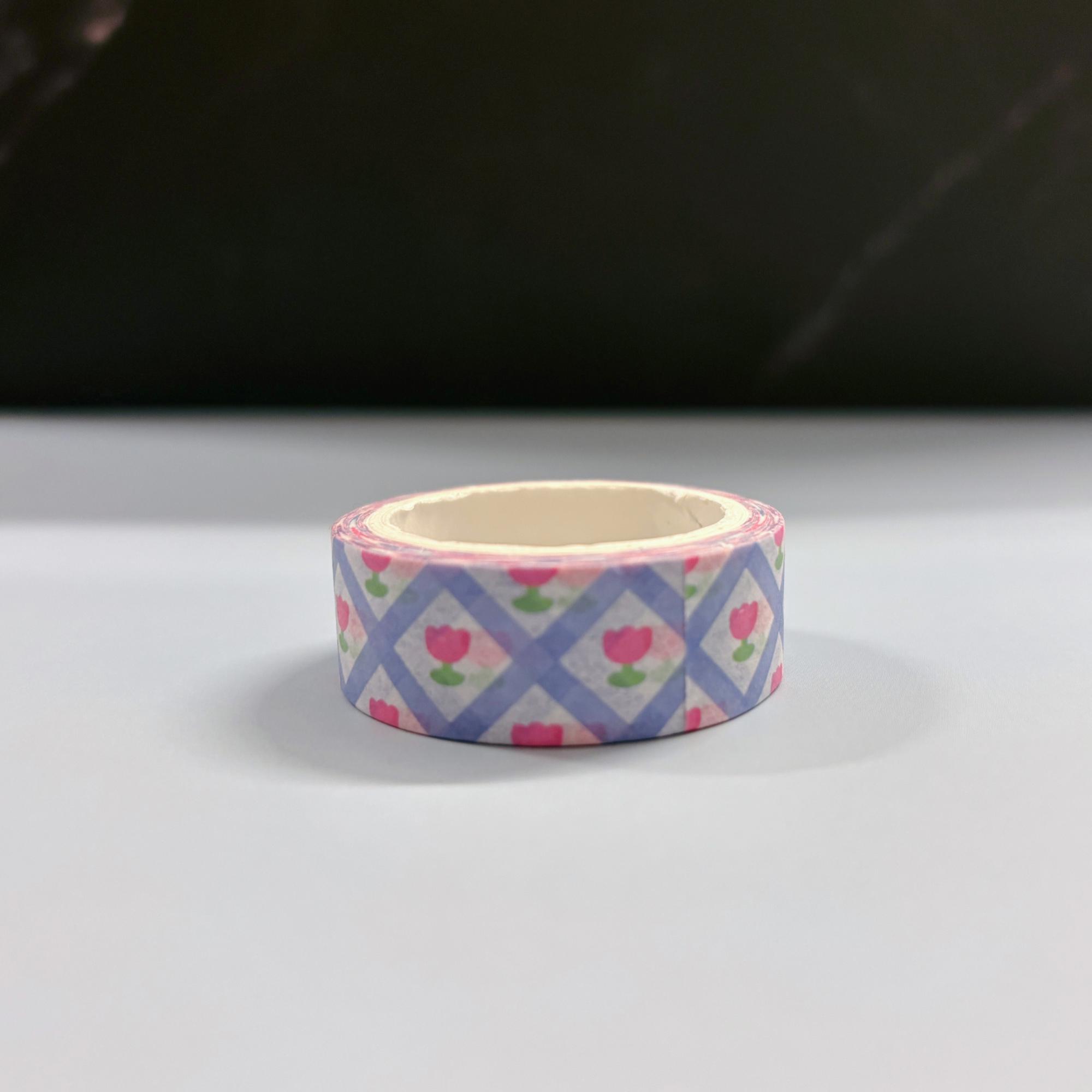 Blue Grid Tulips Washi Tape – Cool blue grid lines meet cheerful tulip designs in this aesthetic roll—ideal for giving your decorations or stationery a fresh, dopamine-inspired upgrade.